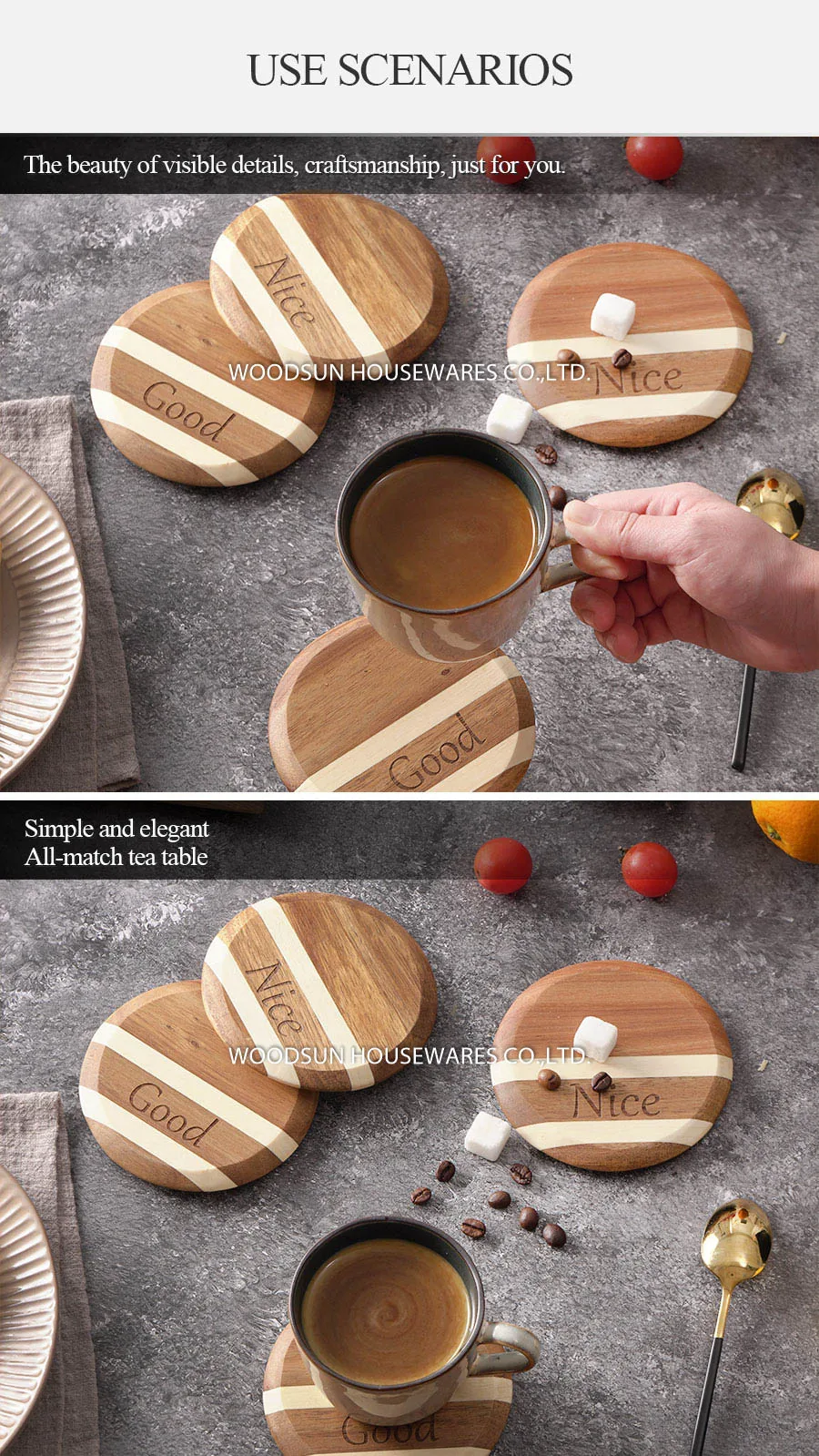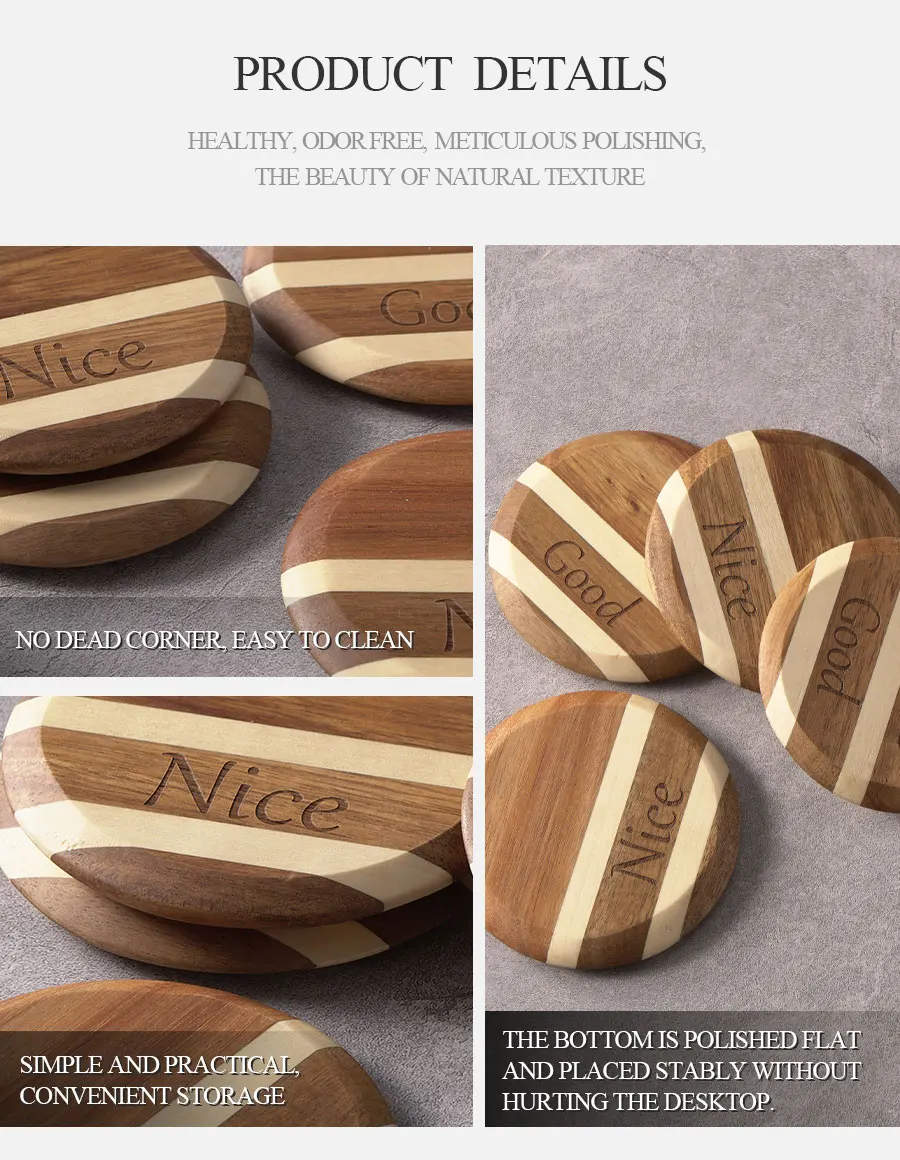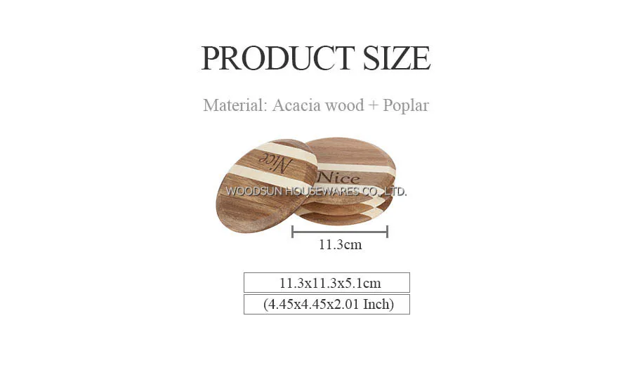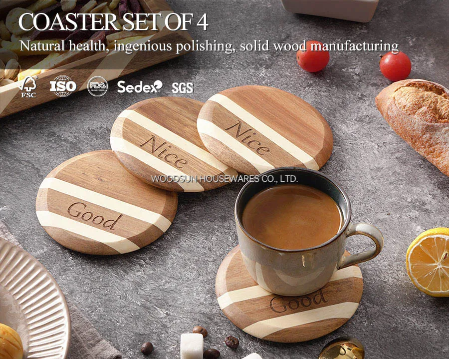 Woodsun Double Twill Design Professional Supplier Coasters Custom Drink Acacia Wood Trivets