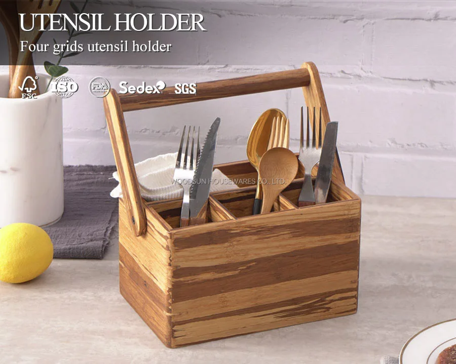 Woodsun Eco Bamboo Basket Gift Kitchen Storage Organizer Basket With Handle