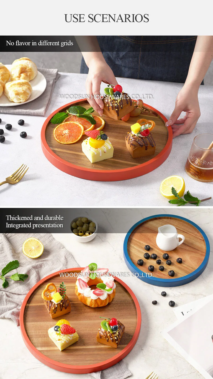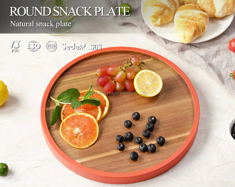 Woodsun Eco Friendly Appetizer Serving Acacia Wood Dessert Plates Food Kids