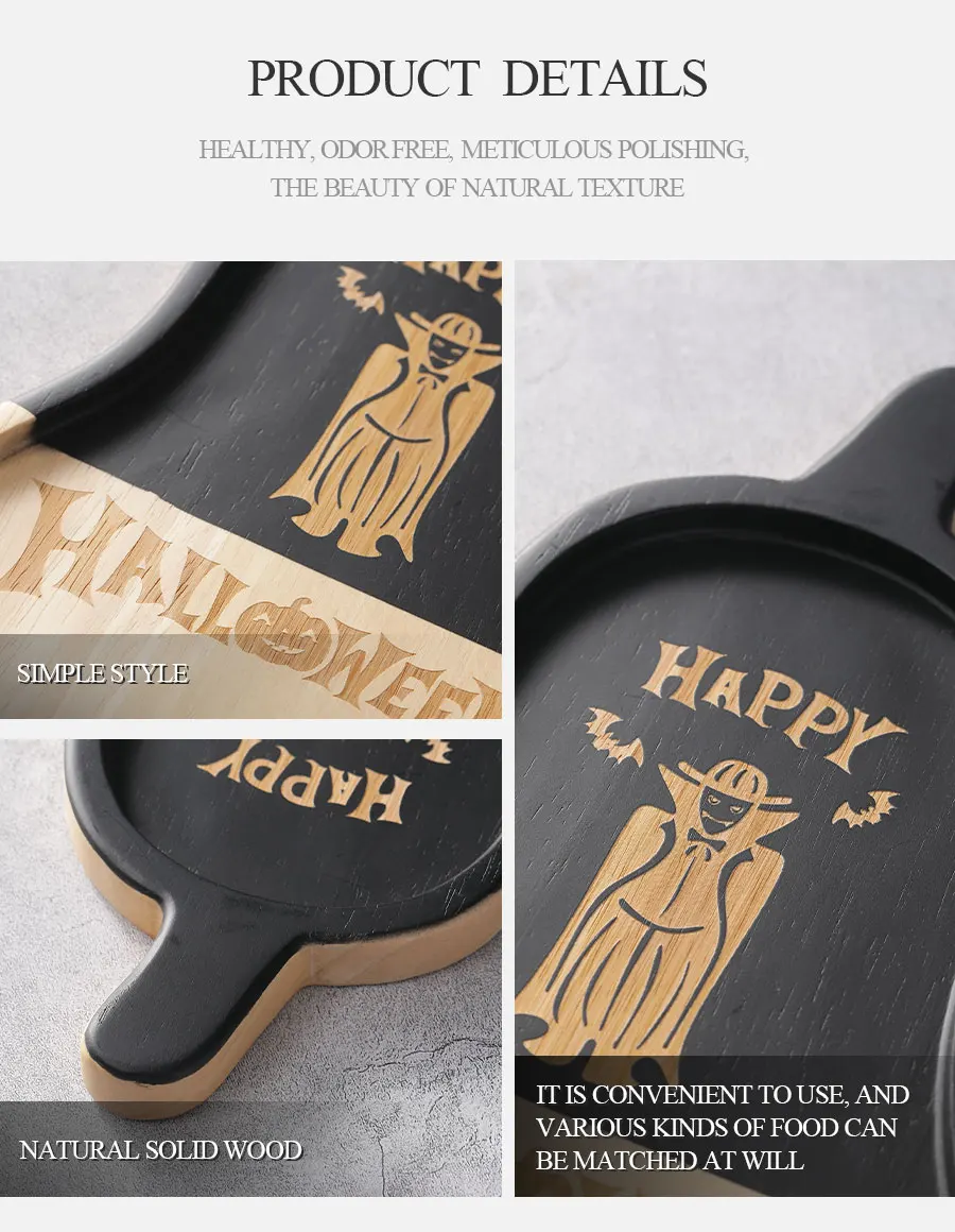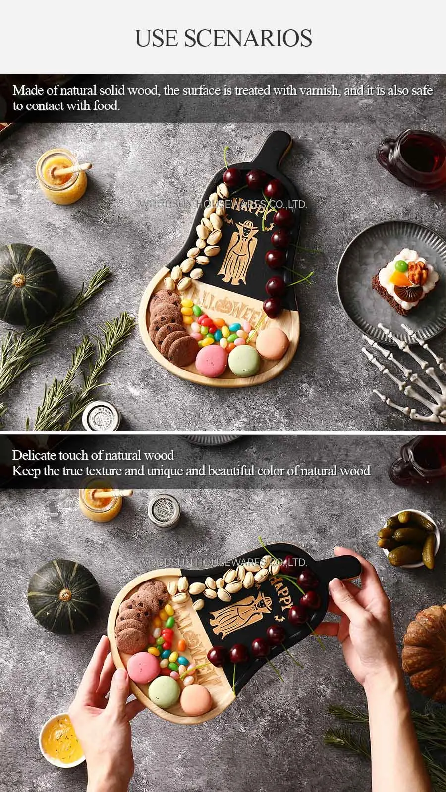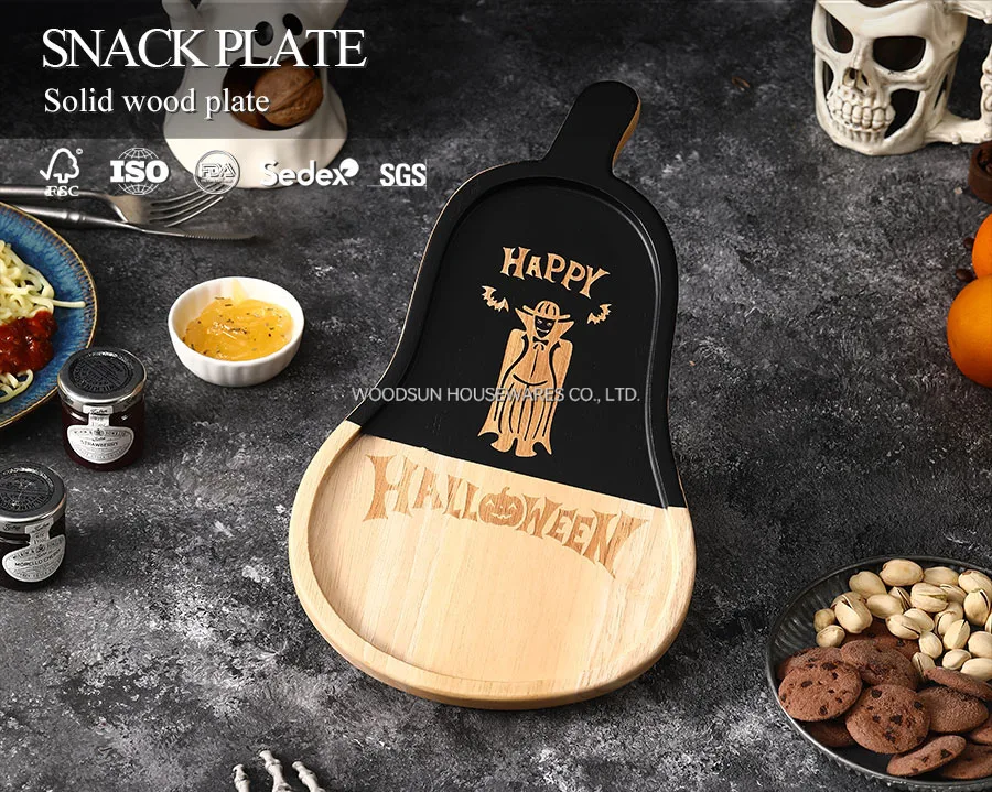 Woodsun Festival Gift Rubber Wood Wooden Plates for Food Halloween