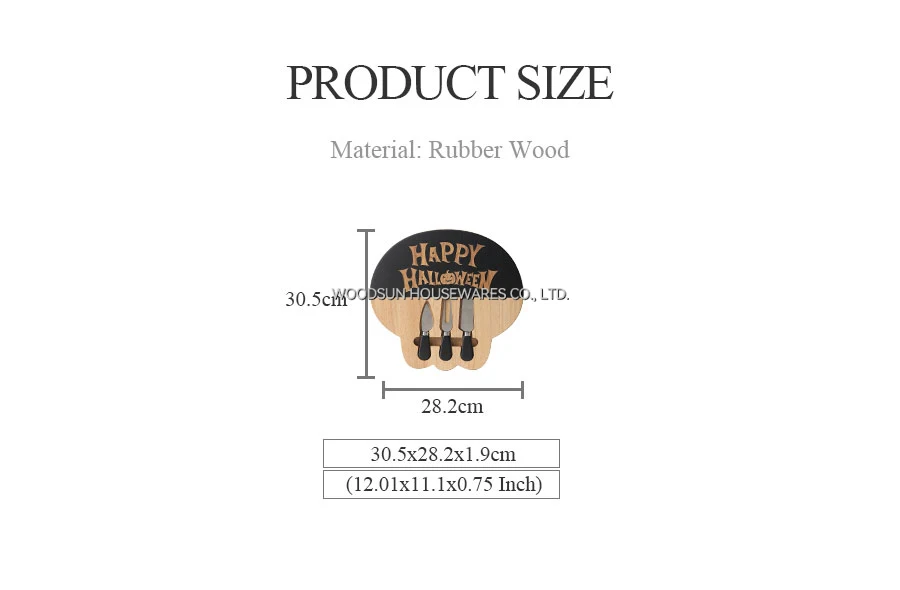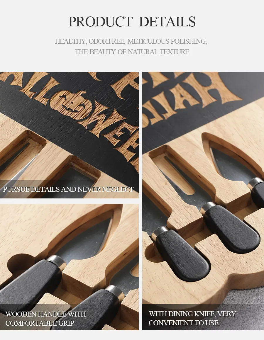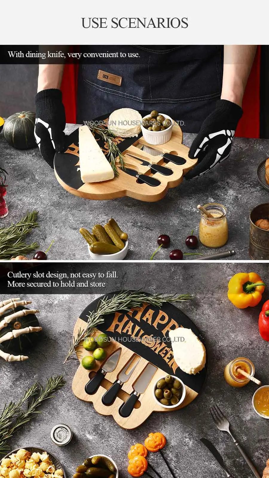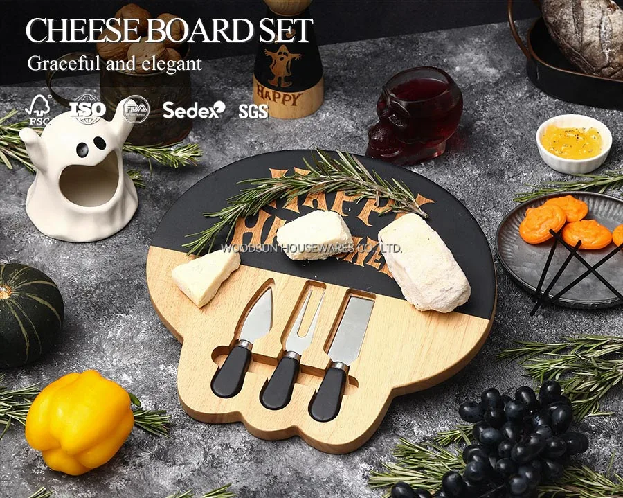 Woodsun Halloween Rubber Wood Cheese Board and Knife Set in Wood