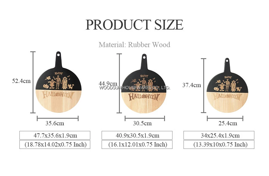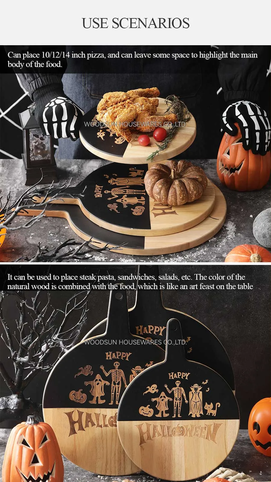 Woodsun Halloween Rubber Wood Kitchen Slicing Food Cutting Boards Wooden