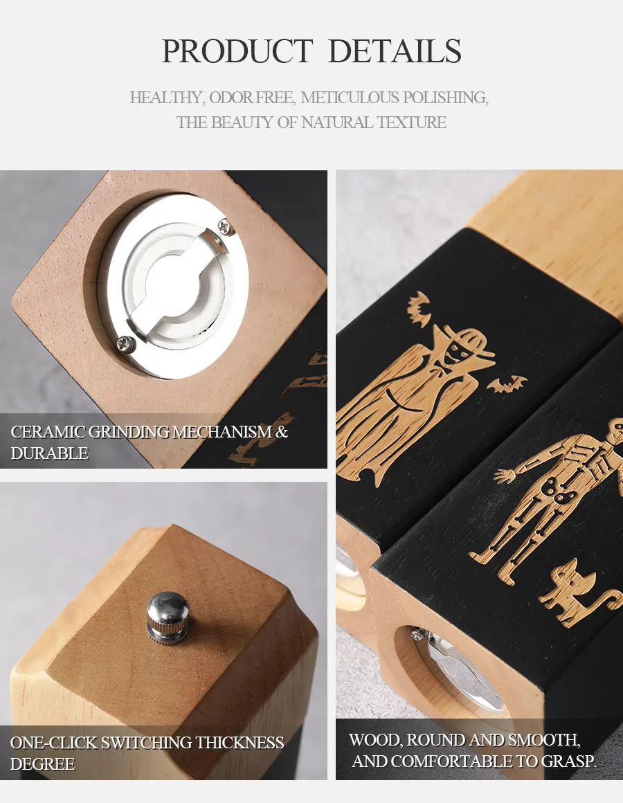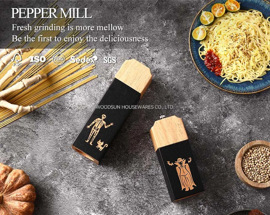Woodsun Halloween Rubber Wood Set of Wood Manual Salt and Pepper Mill Grinder 2 in 1