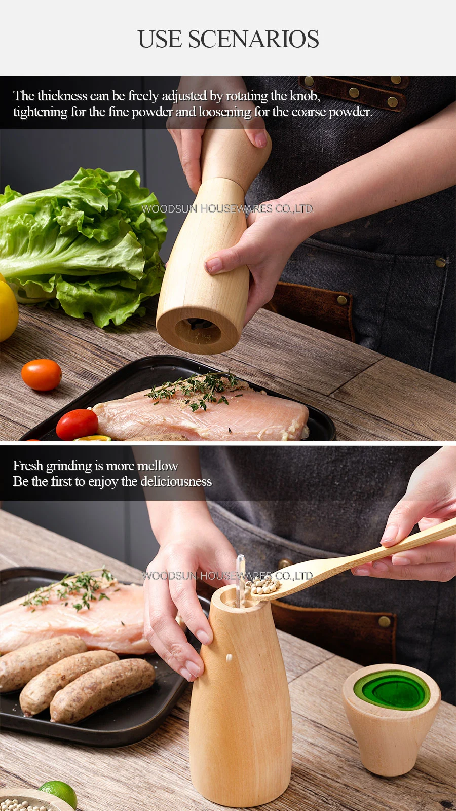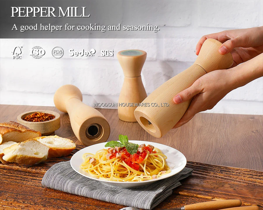 Woodsun Hard Maple Resin Ceramic Aluminum PP 303S/S Grinder Salt And Pepper Mill