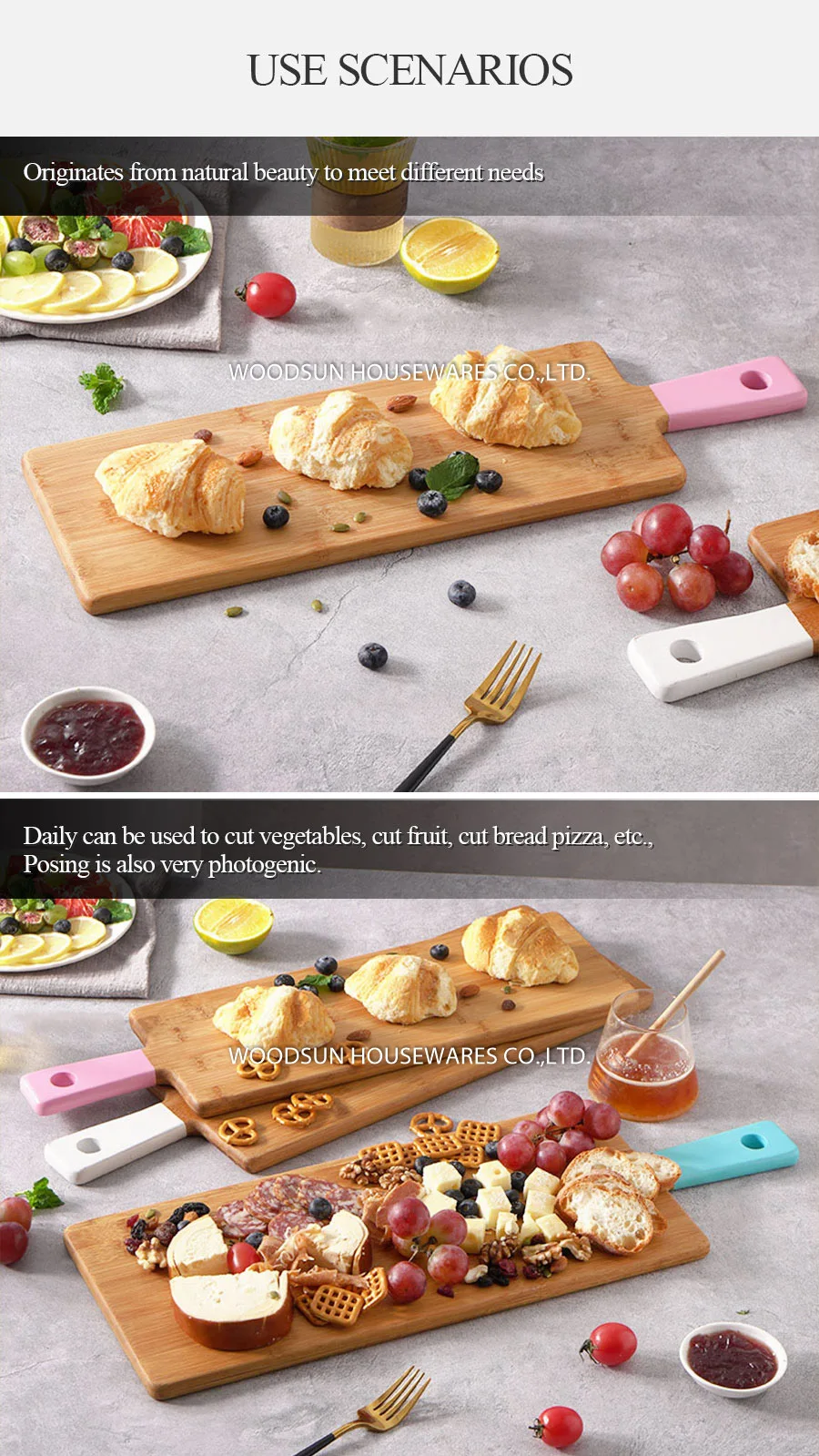 Woodsun Kitchen Utensils Paddle Cutting Board Bamboo Serving Board With Handle