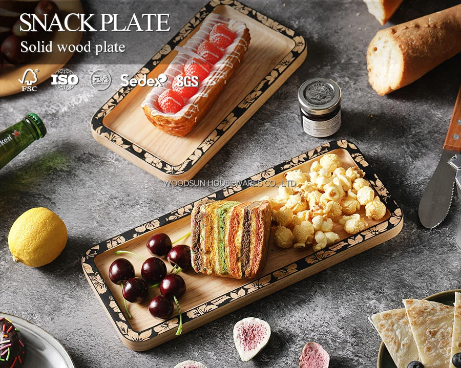 Woodsun Laser Engraving Restaurant Natural Reusable Wood Plate Wholesale