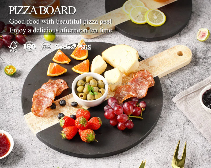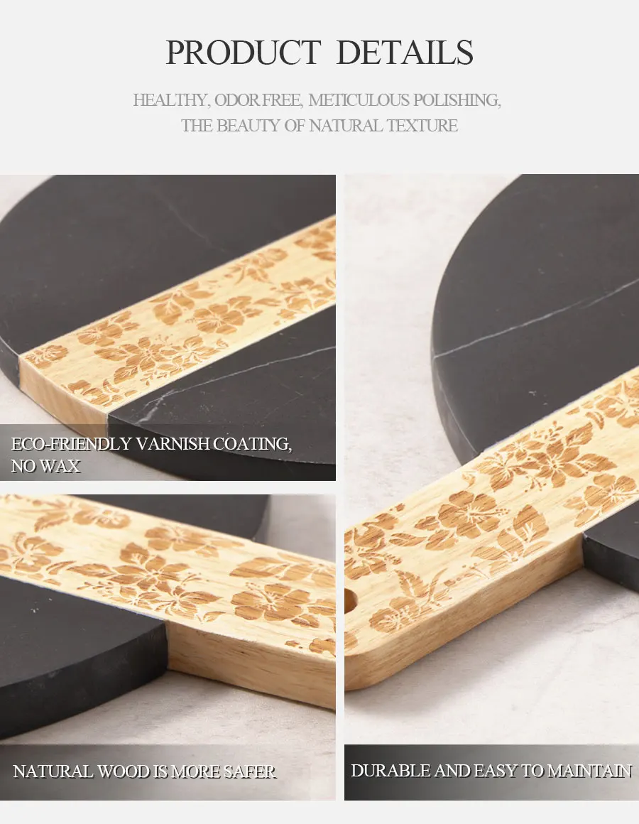 Woodsun Laser Pattern Marble And Rubber Wood Cutting Board 2024 Black Marble Chopping Block