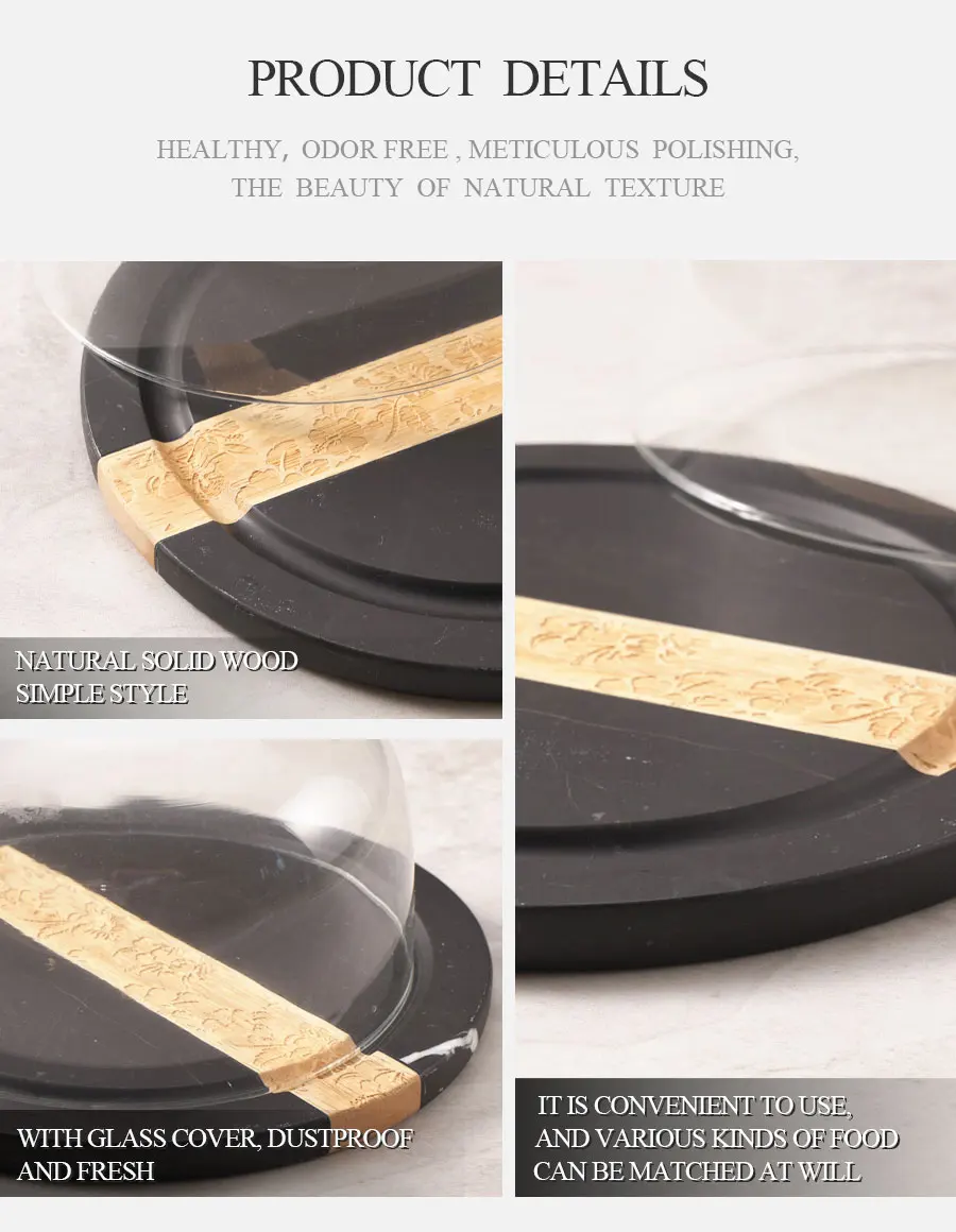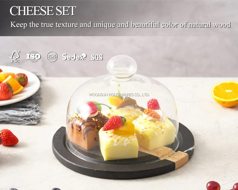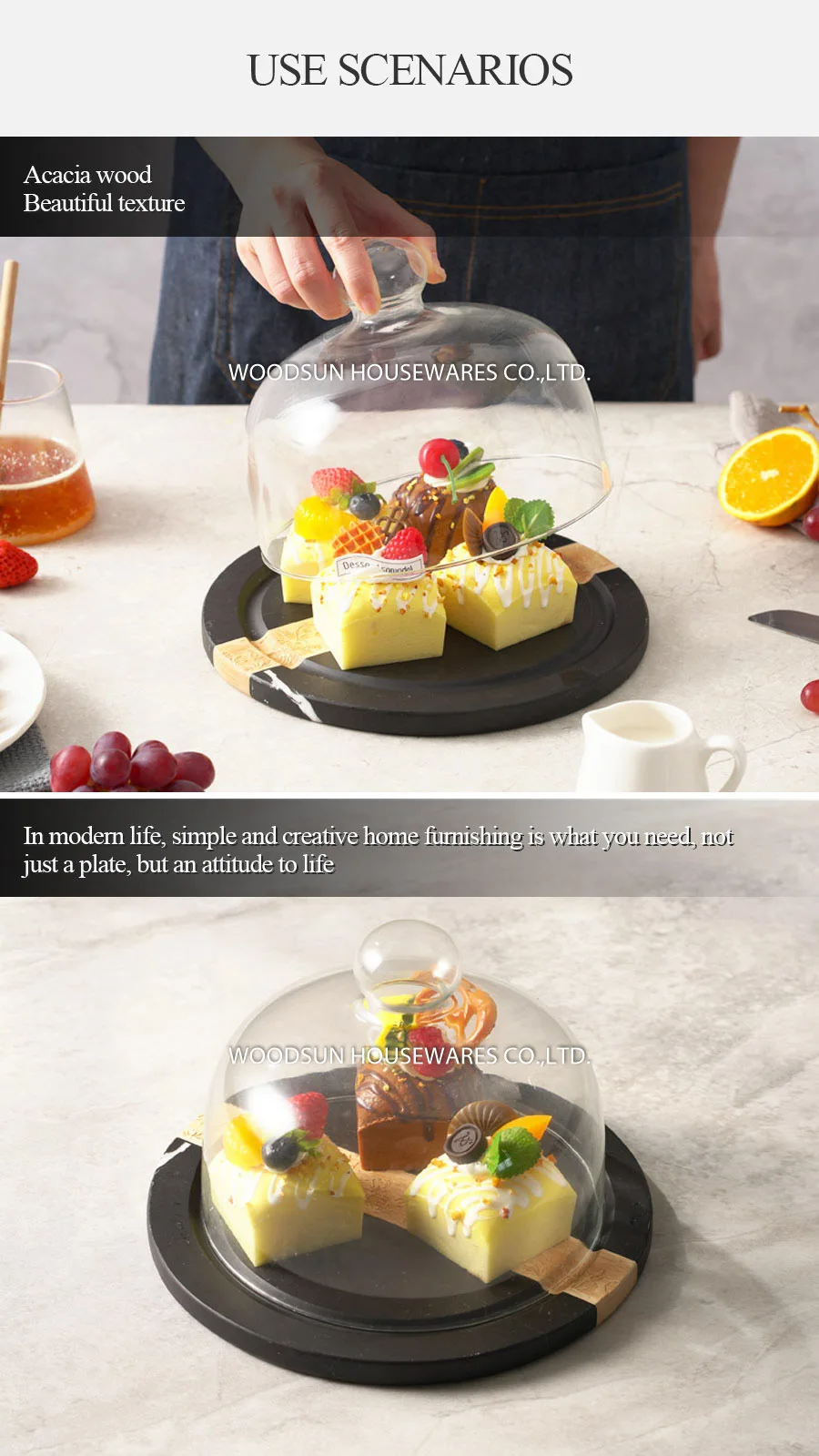 Woodsun Manufacturer Kitchen Party Marble Wood Cheese Charcuterie Board Cheese Dome