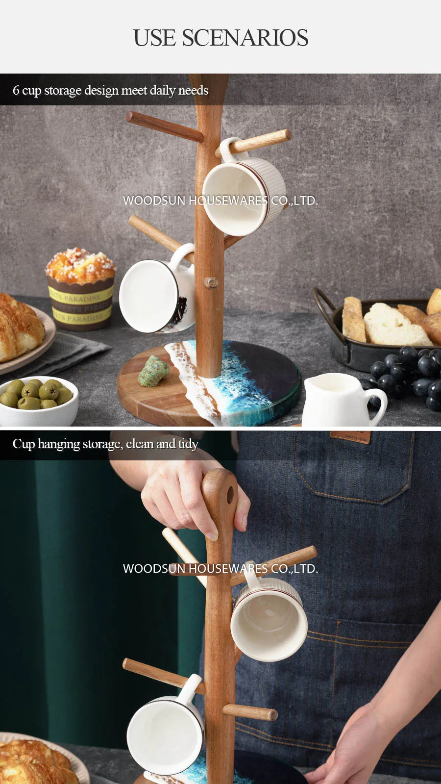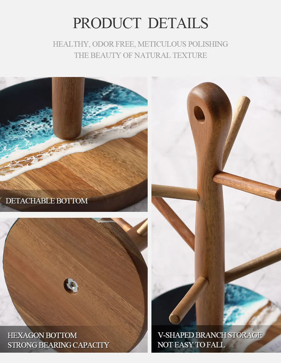 Woodsun Manufacturer Wooden Mug Tree Stand Mug Cup Holder