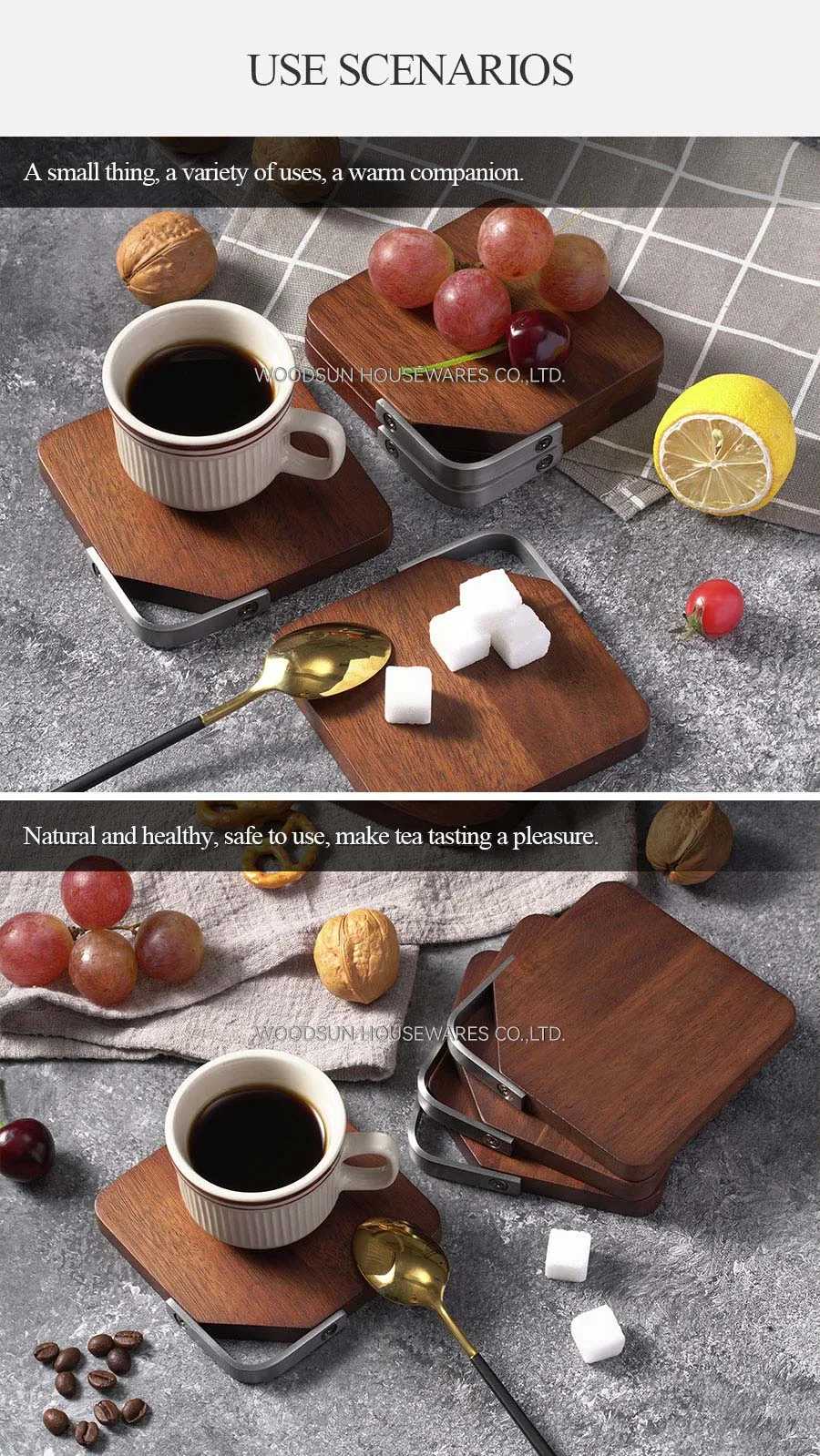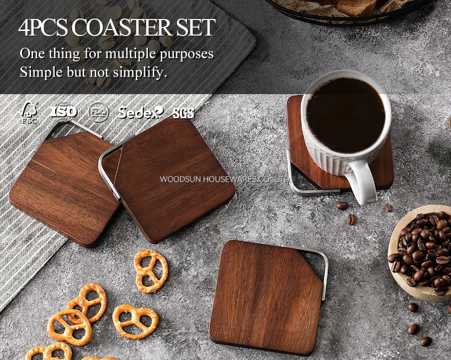 Woodsun Metal Triangle Ring Wood Coffee Coaster Cup Mat
