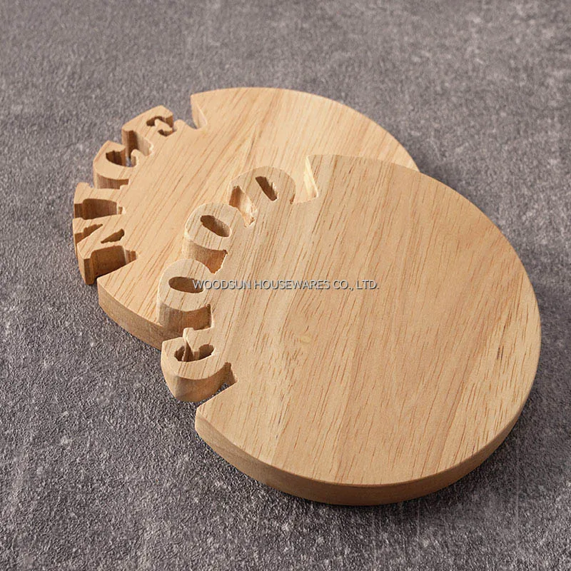 Woodsun Modern Untersetzer Tatakan Gelas Solid Lettering Wooden Coaster Set