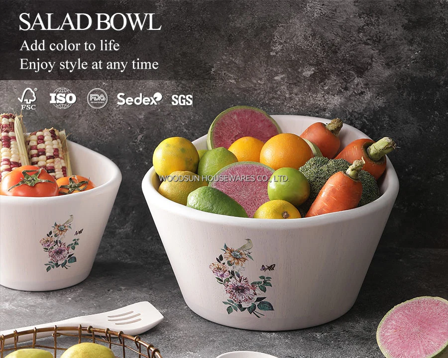 Woodsun Modern White Wash Rubber Wooden Salad Bowls Party