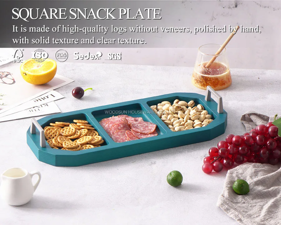 WOODSUN Modern Wood Plates Dish For Food Serving Tray Snack Tray With Handles
