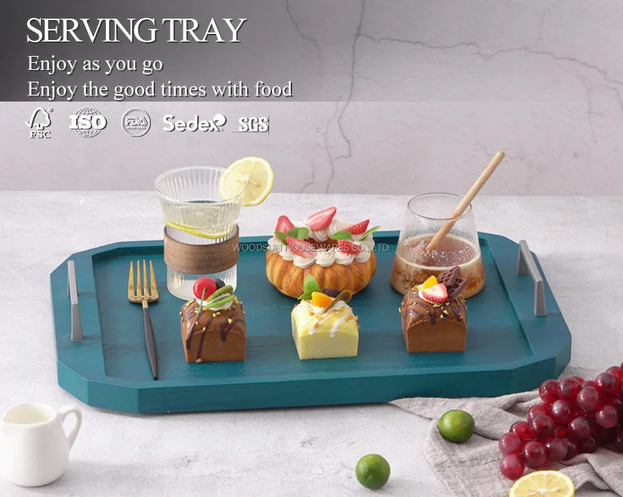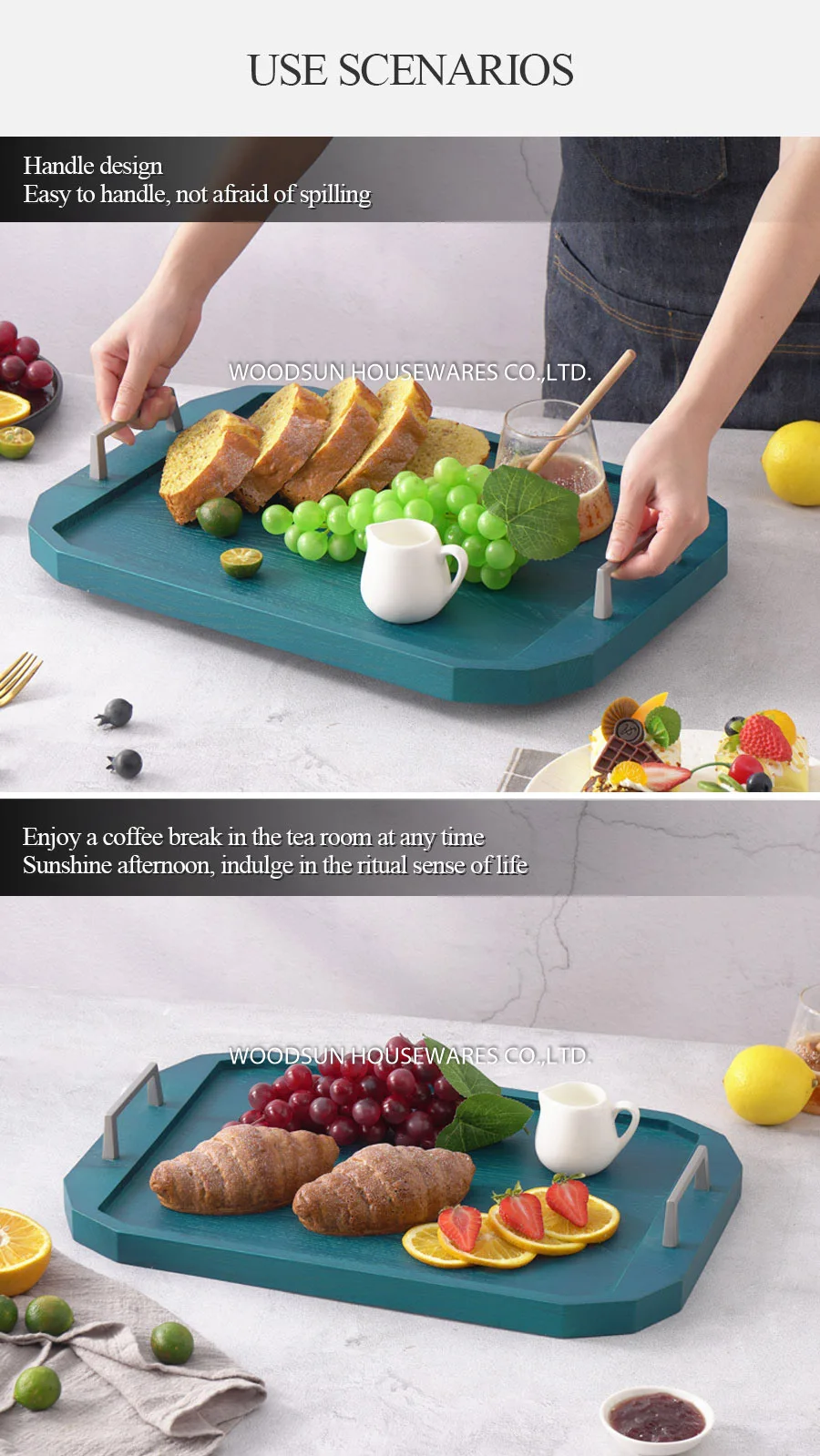 WOODSUN Modern Wood Serving Tray with Handles Sustainable Wood Plate Dish for Restaurant or Home Use