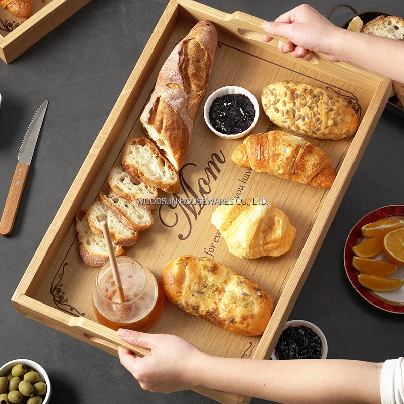 Woodsun Mother's Day Gift Wooden Food Trays Set Serving