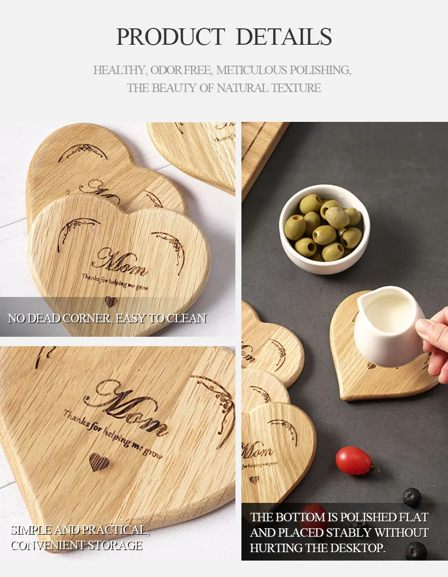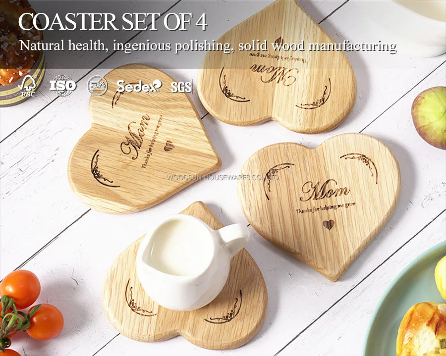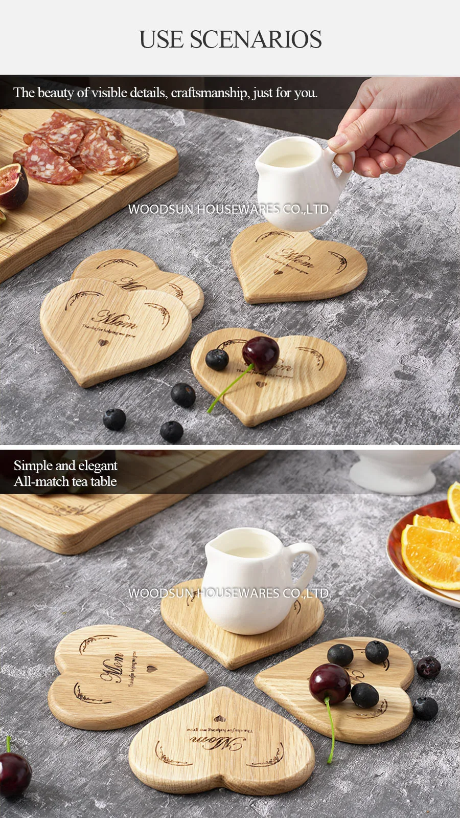 Woodsun Mothers Day Heart Shape Natural Rubber Place Mat Wood Coaster for Coffee Tea