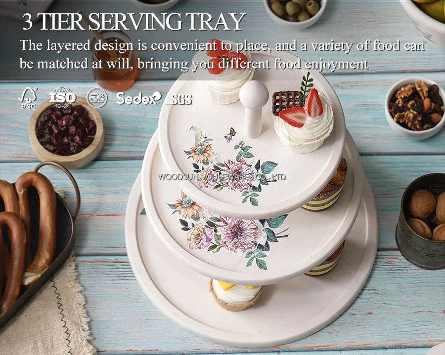 Woodsun Muti-purpose Wholesale Wood 3 Layers Cake Stand Plate for Party Cupcake Stand