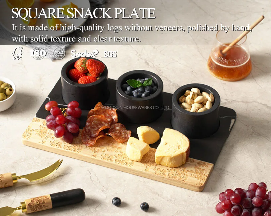 Woodsun New 2025 Food Serv Tray Restaurant Custom With Chip and Dip Bowls