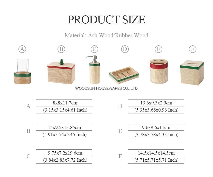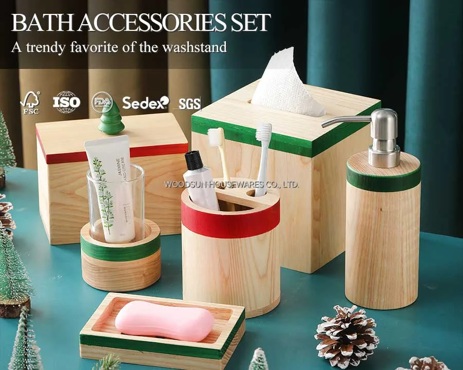 Woodsun New Christmas Design Eco Wooden Lotion Dispenser Bathroom Product Sets