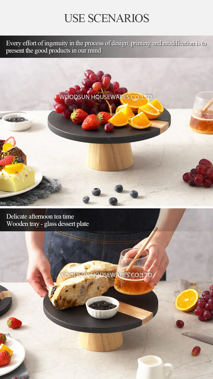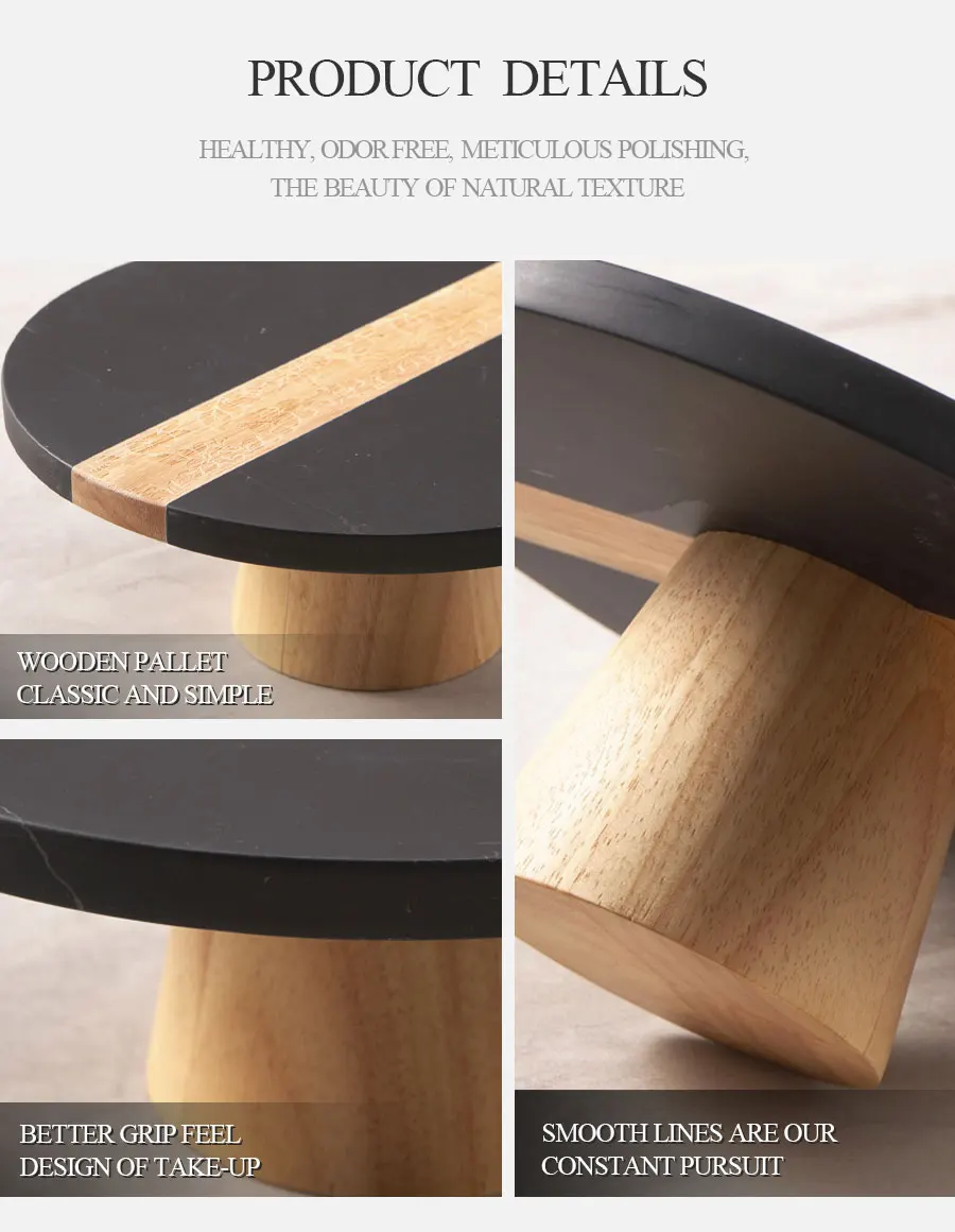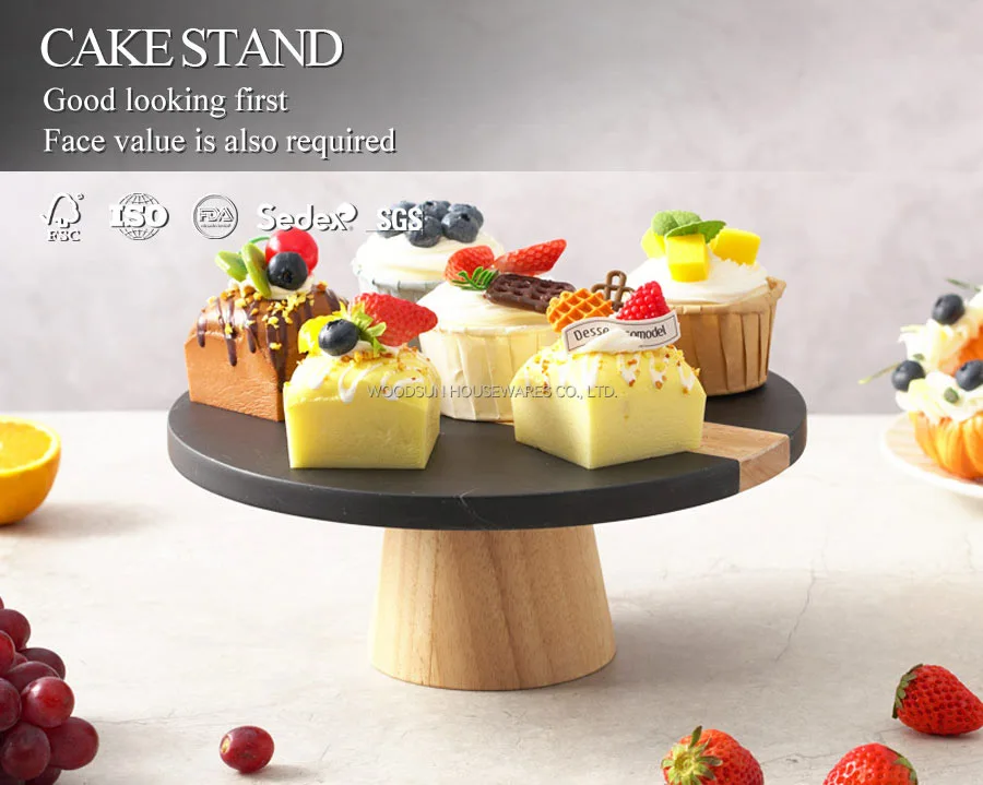 Woodsun New Design 2025 Black Marble Wooden Cake Stand Wedding Cakes Stand