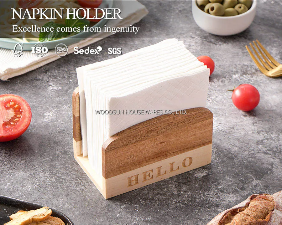 Woodsun Oblique Splicing Tissue Box Wood Serviette Napkin Holders