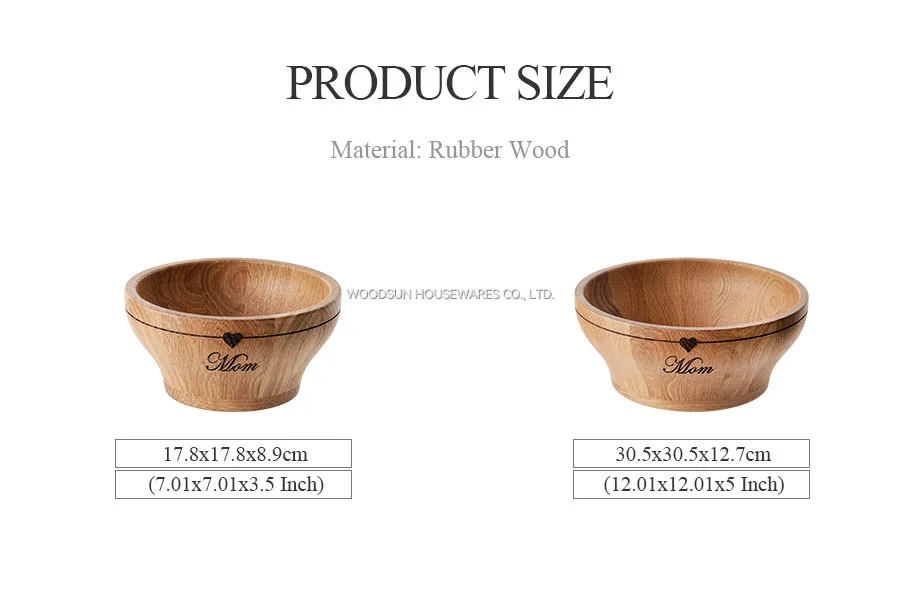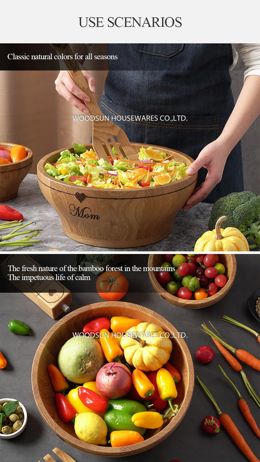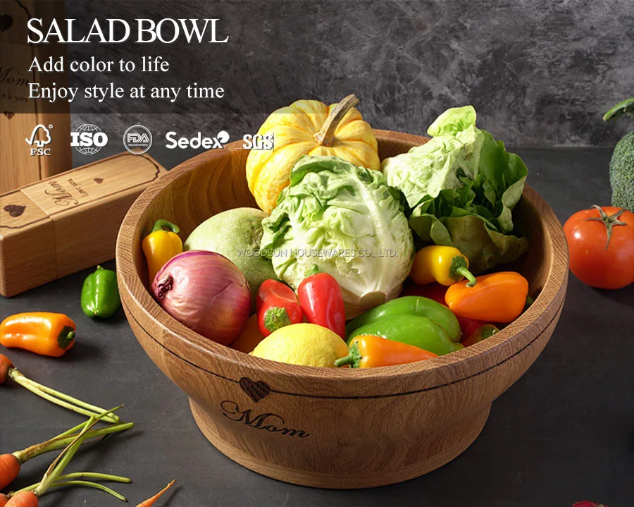 Woodsun ODM OEM Custom Mixing Wood Salad Bowl Food for Mother's Day Gift