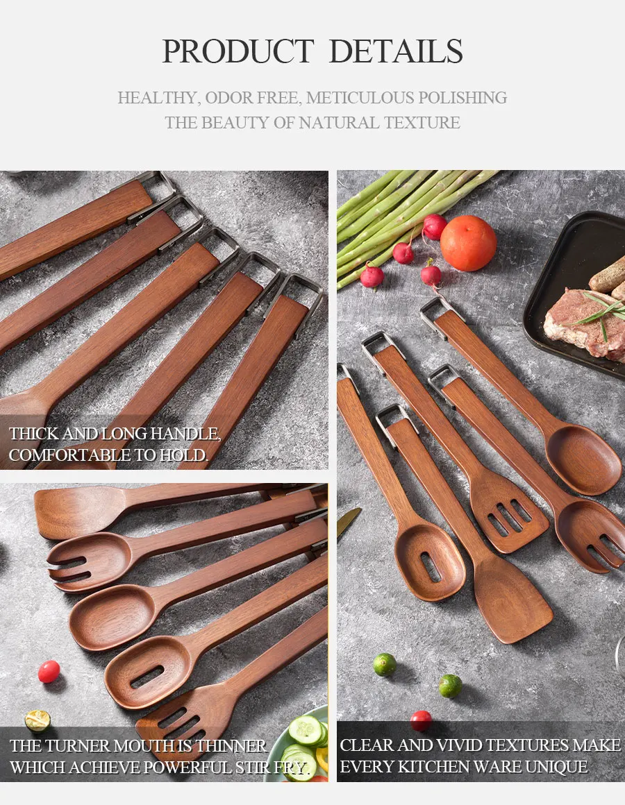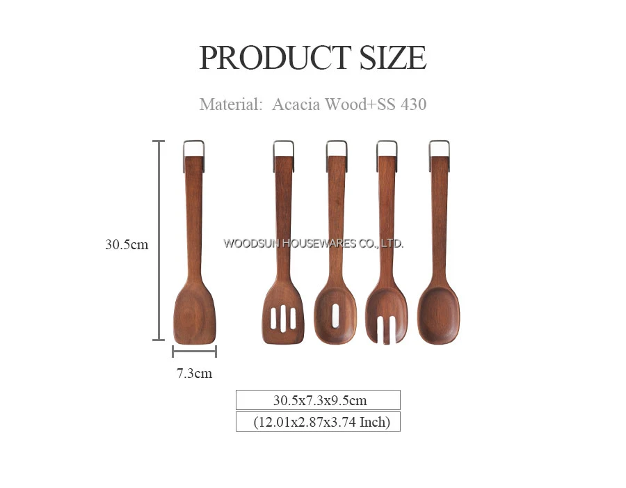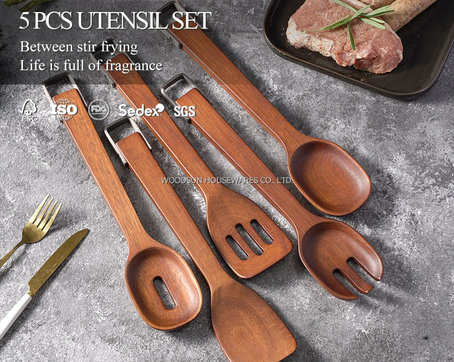 Woodsun OEM Metal Wooden Kitchen Utensil Cutlery Spoon