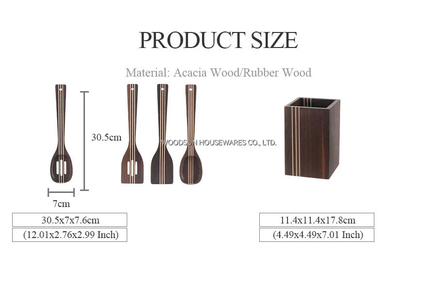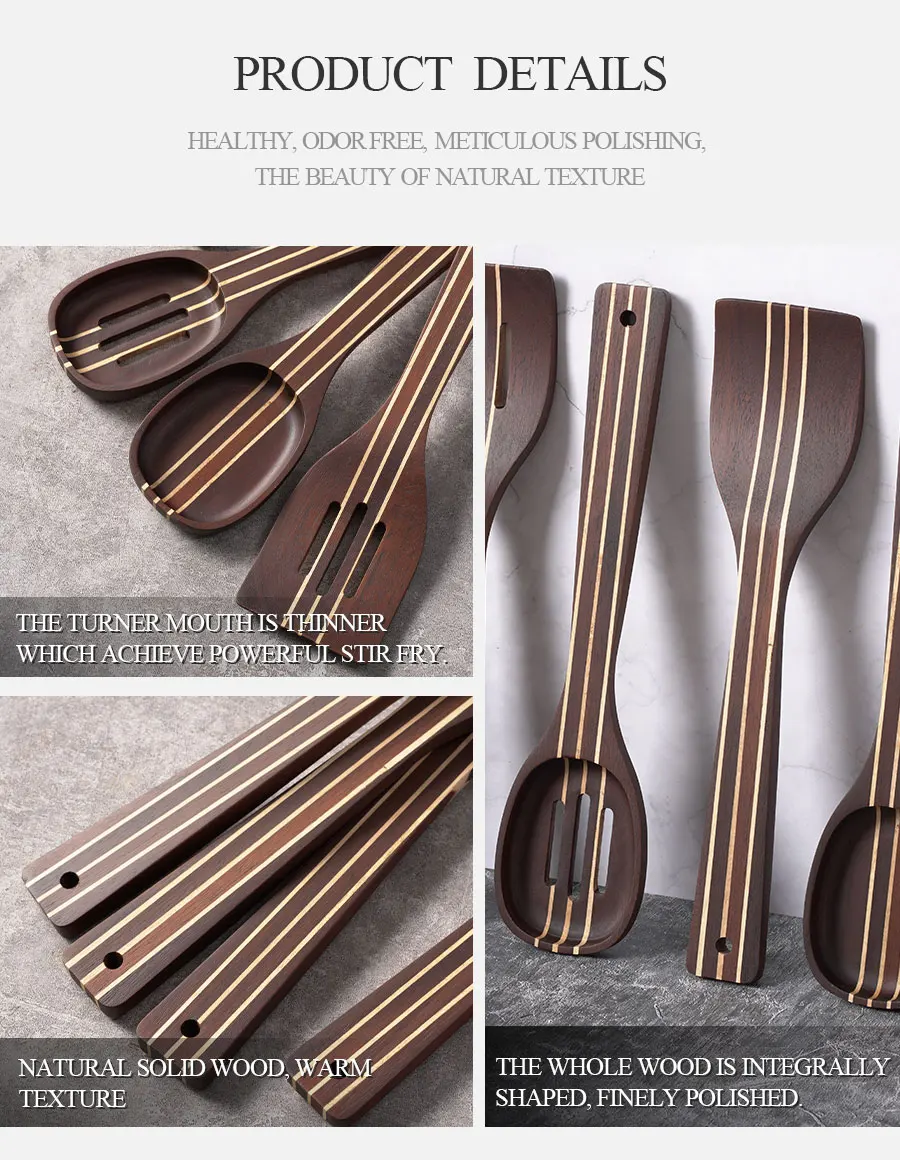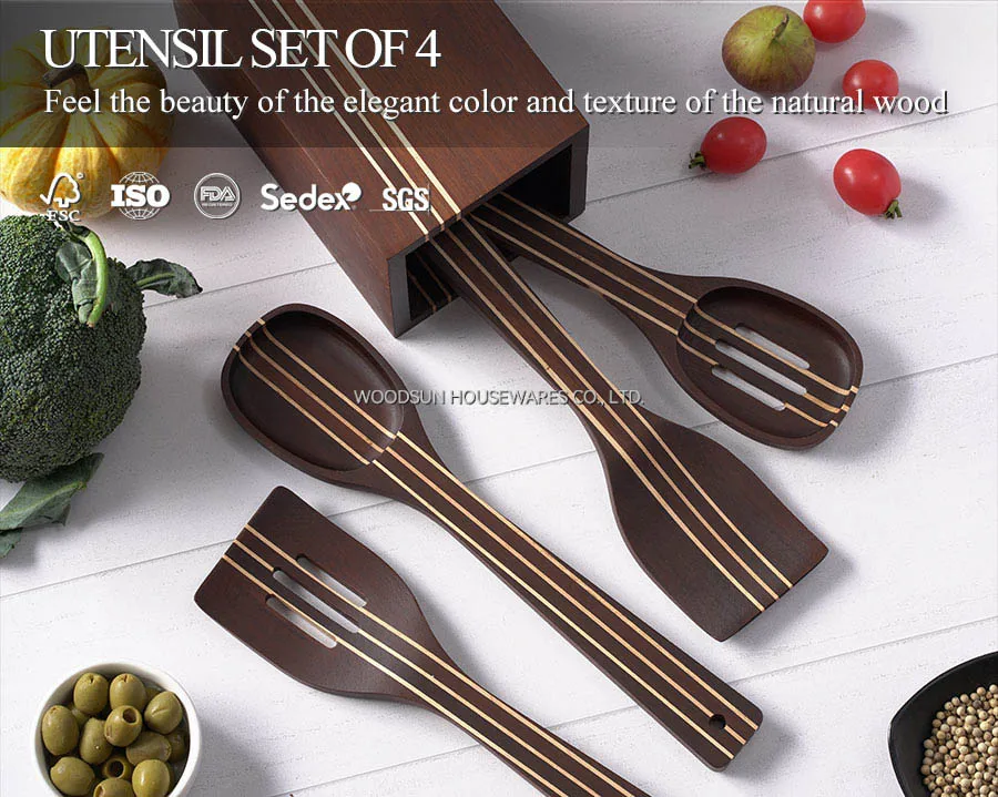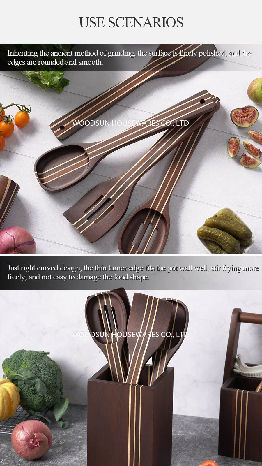 Woodsun OEM Metal Wooden Kitchen Utensil Cutlery Spoon Kitchen Utensils Set