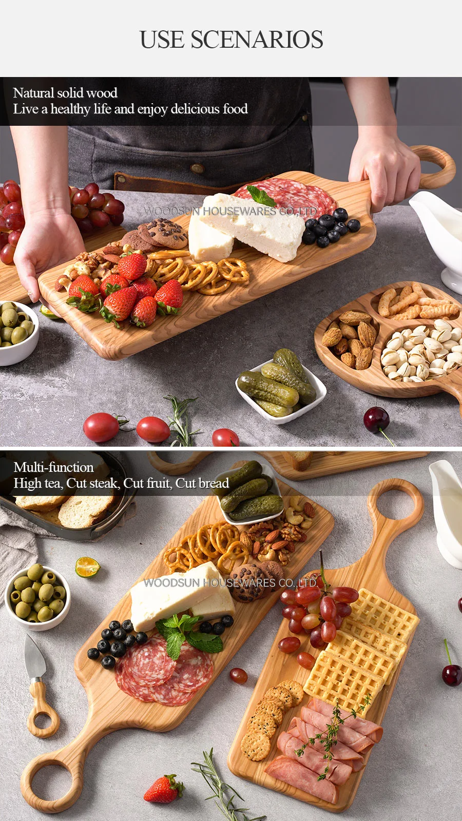 Woodsun Olive Wood Turkish Restaurant Serving Cutting Board Tray With Handle