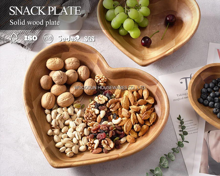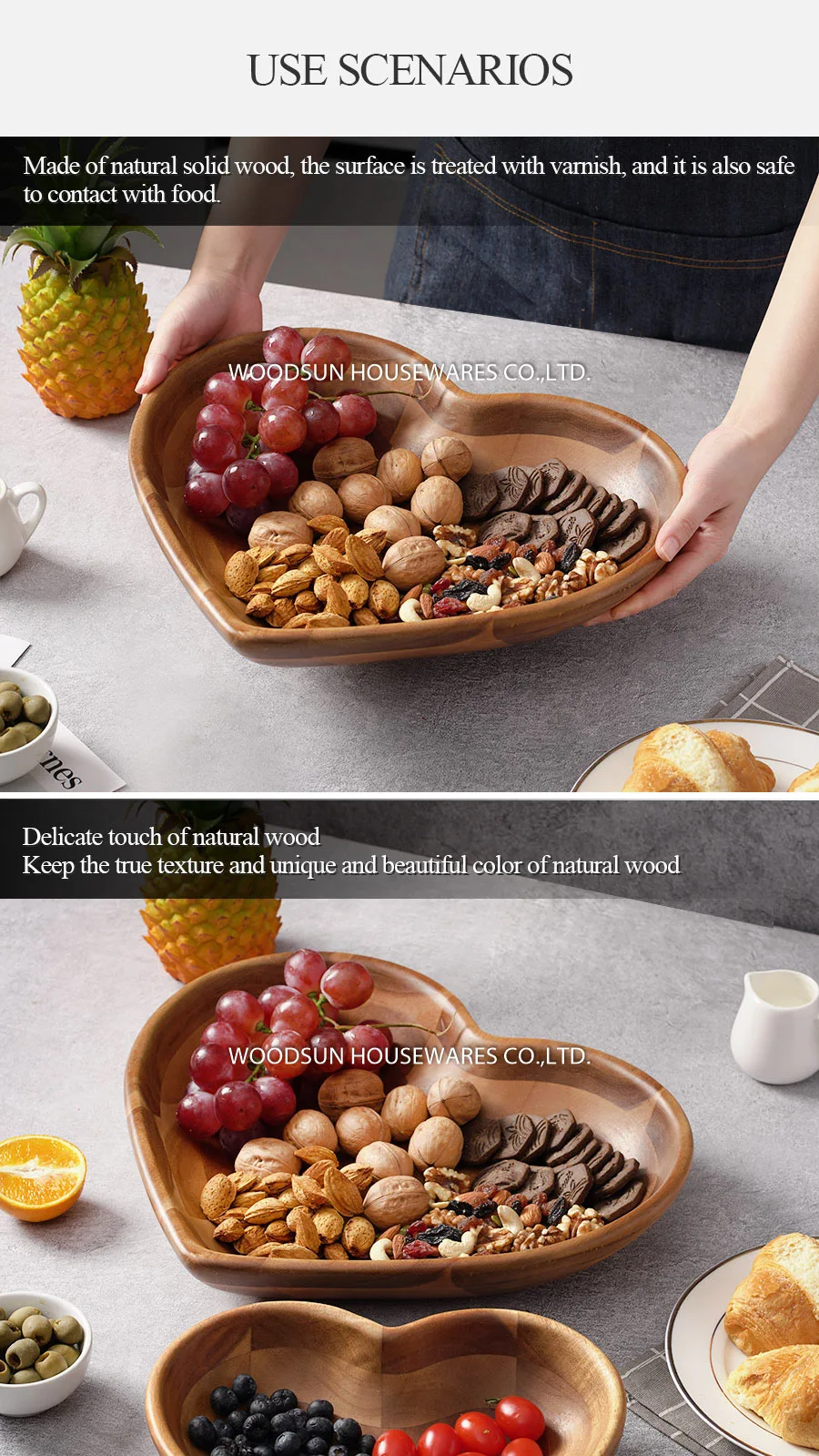 Woodsun Plate Tray Wood Bowls Food Fruit Heart Shaped Wooden Platter