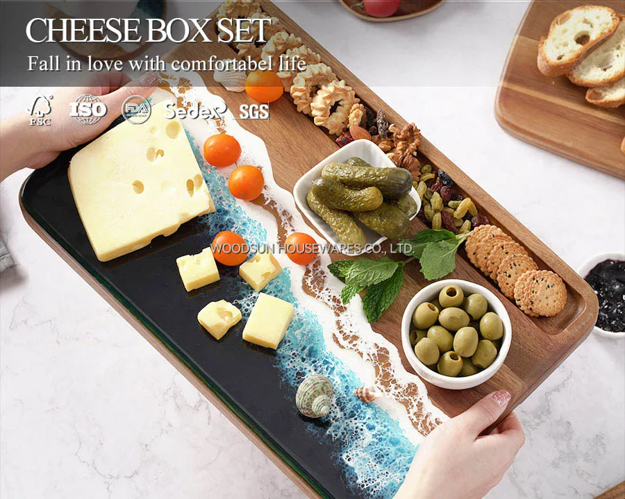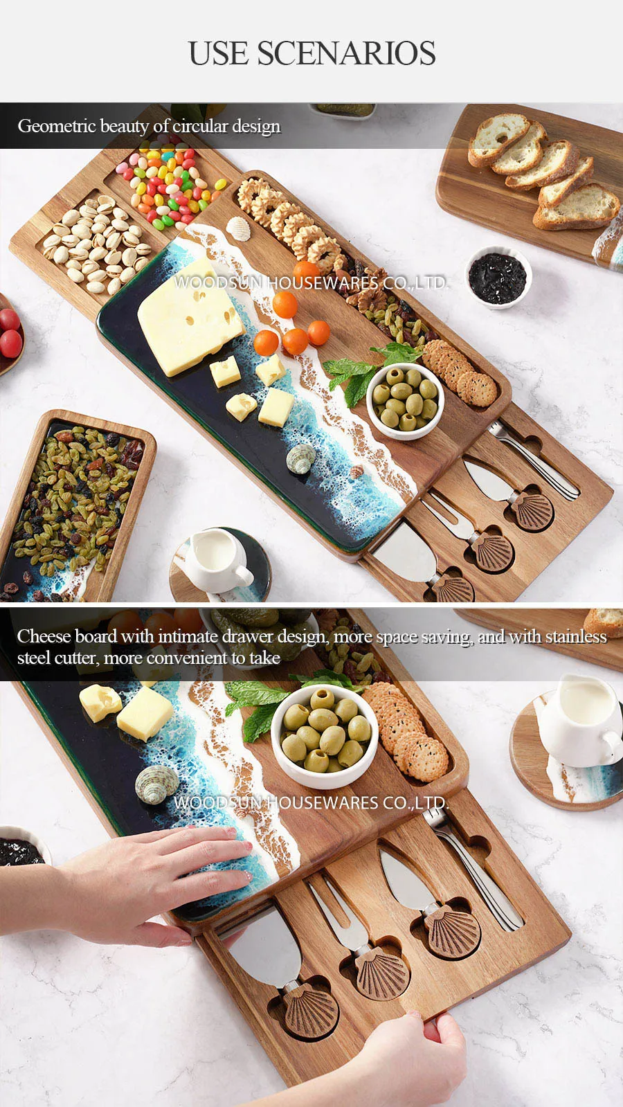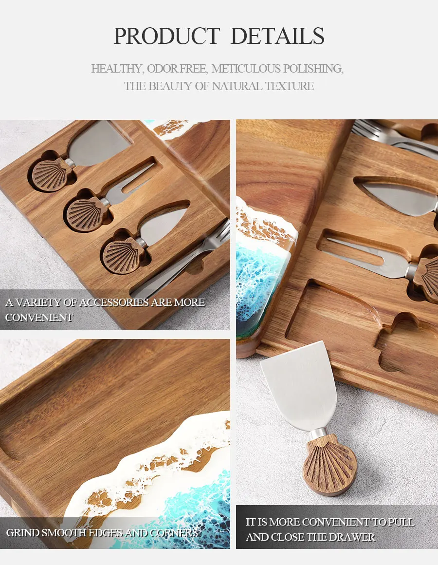 Woodsun Plato De Quesos Expendable Shell Shape Handle Wood Cheese Board Knife Set With Board