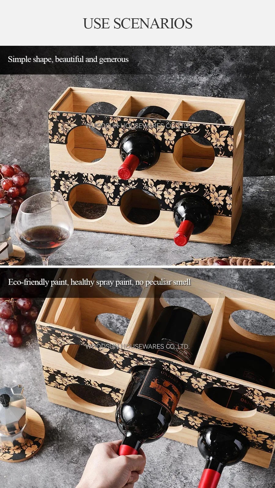 Woodsun Professional Made Wooden Wine Display Rack Storage