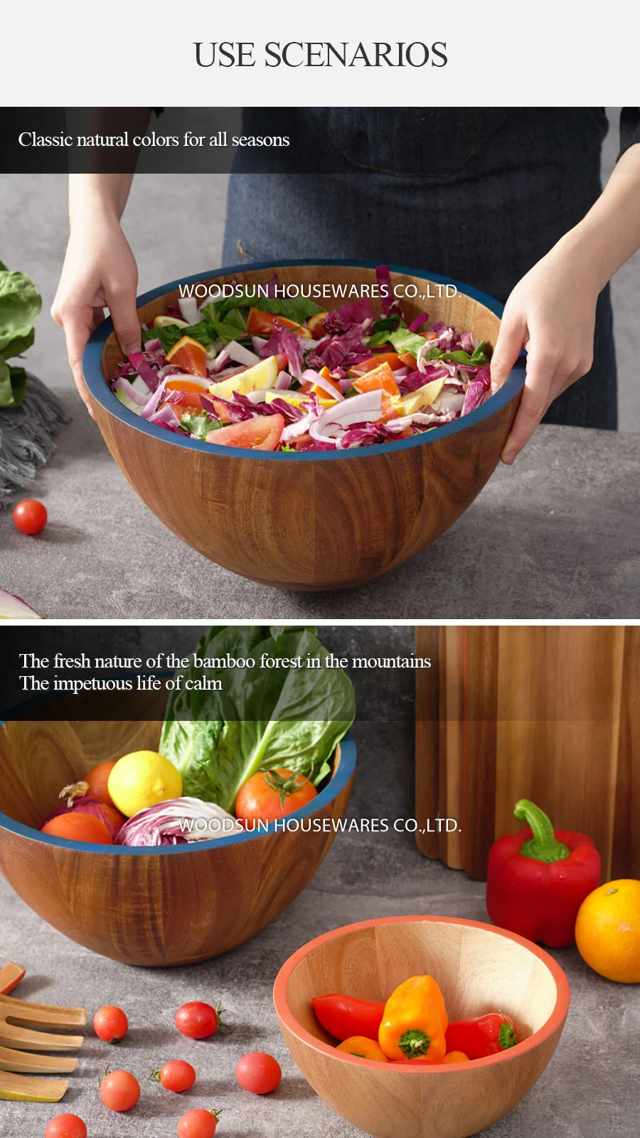 Woodsun Professional Supplier 2025 Acacia Wood Fruit Salad Bowl