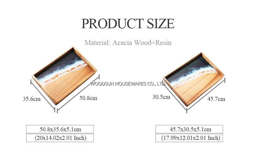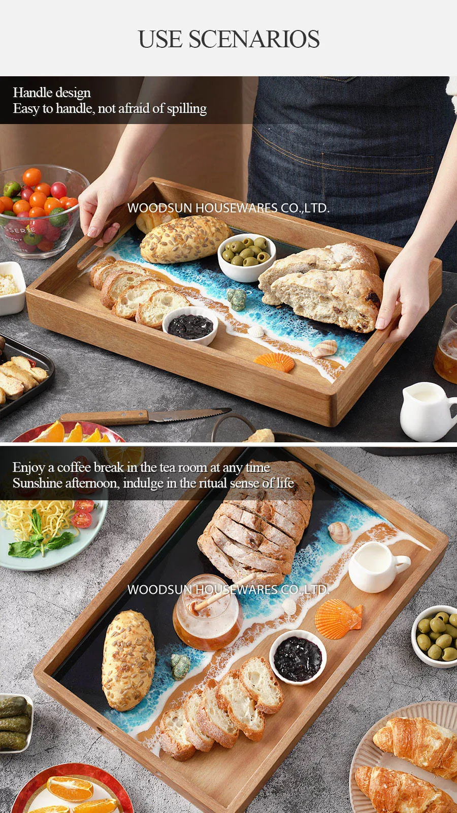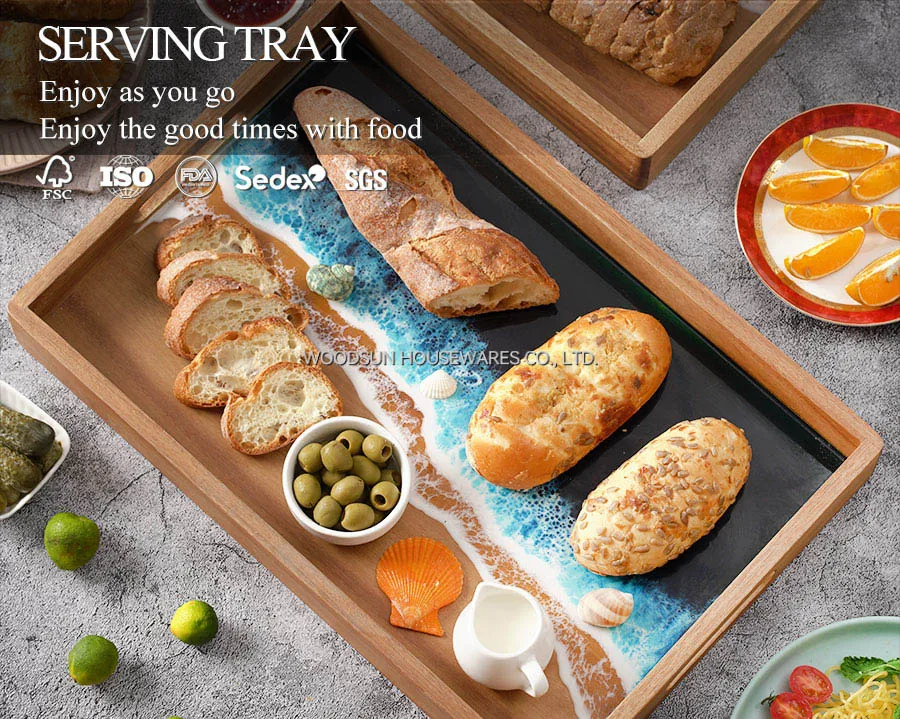 Woodsun Rectangle Marine Resin Wooden Trays Set for Serving