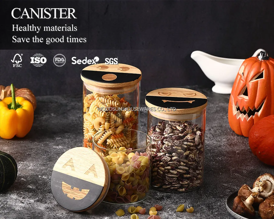 Woodsun Rubber Wood Glass Silicone Cover Storage Glass Canister