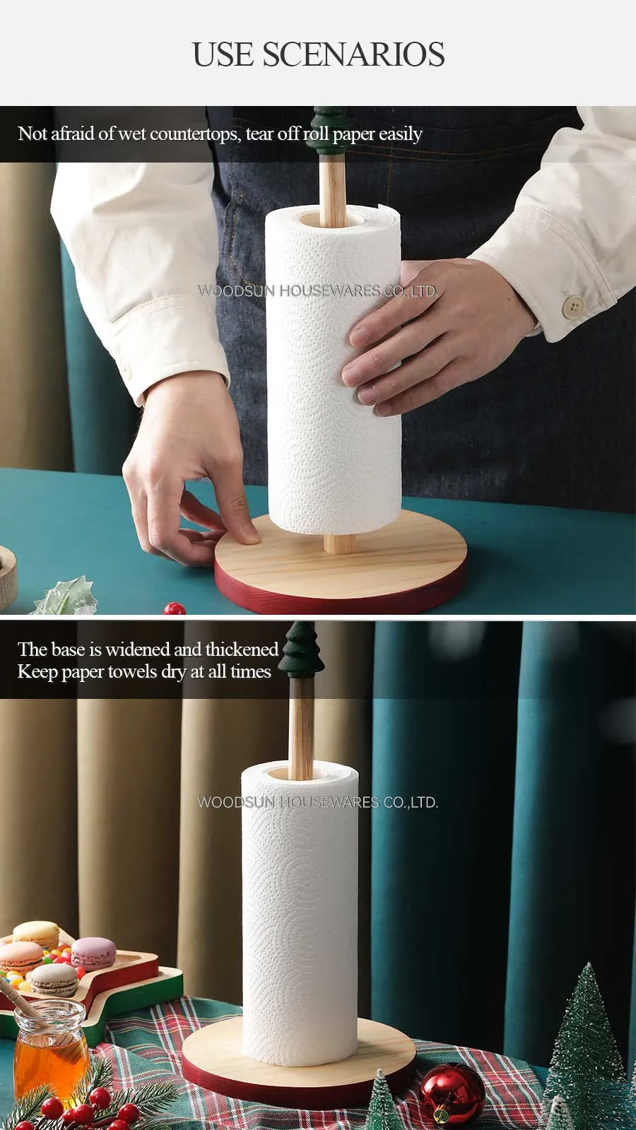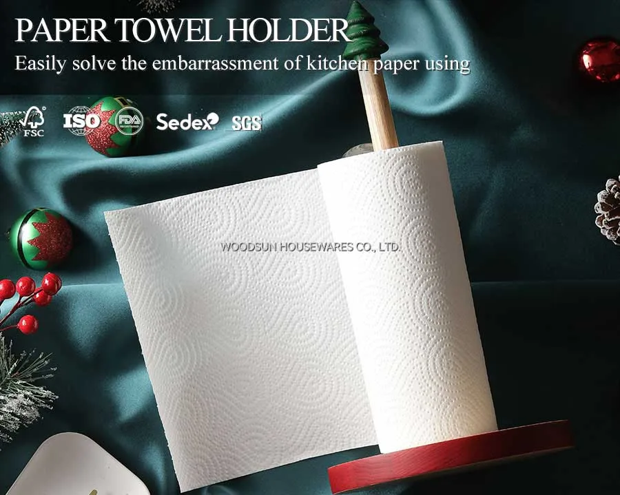 Woodsun Rubber Wood Iron Christmas Tree Paper Towel Holder Bathroom Sets