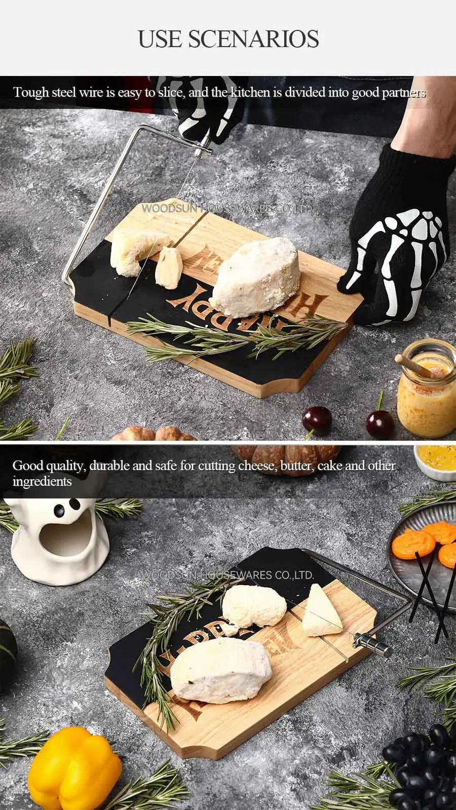 Woodsun Rubber Wood Rustic Cutting Cheese Board With Built-in Slicer
