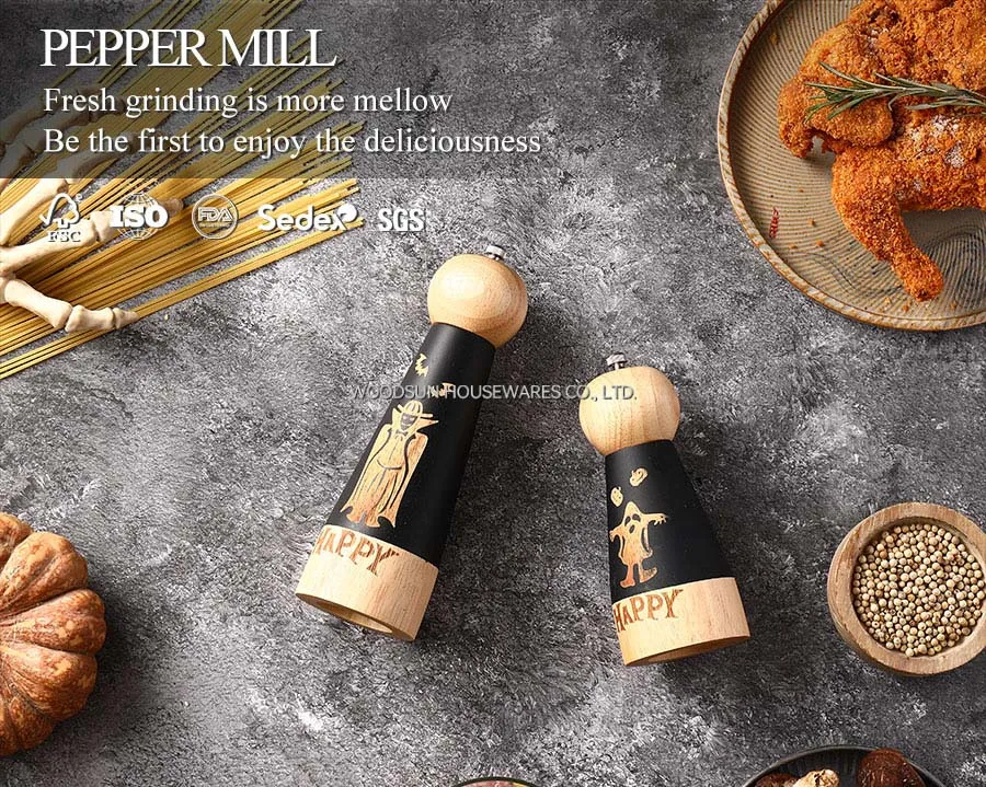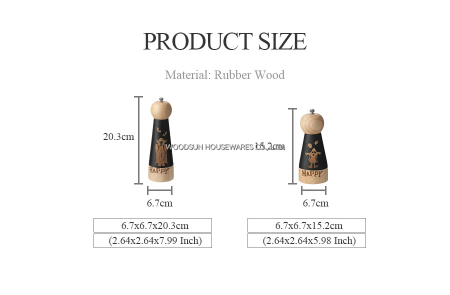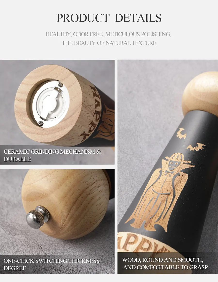 Woodsun Rubber Wooden Halloween Salt and Pepper Manual Grinders Mill Wood