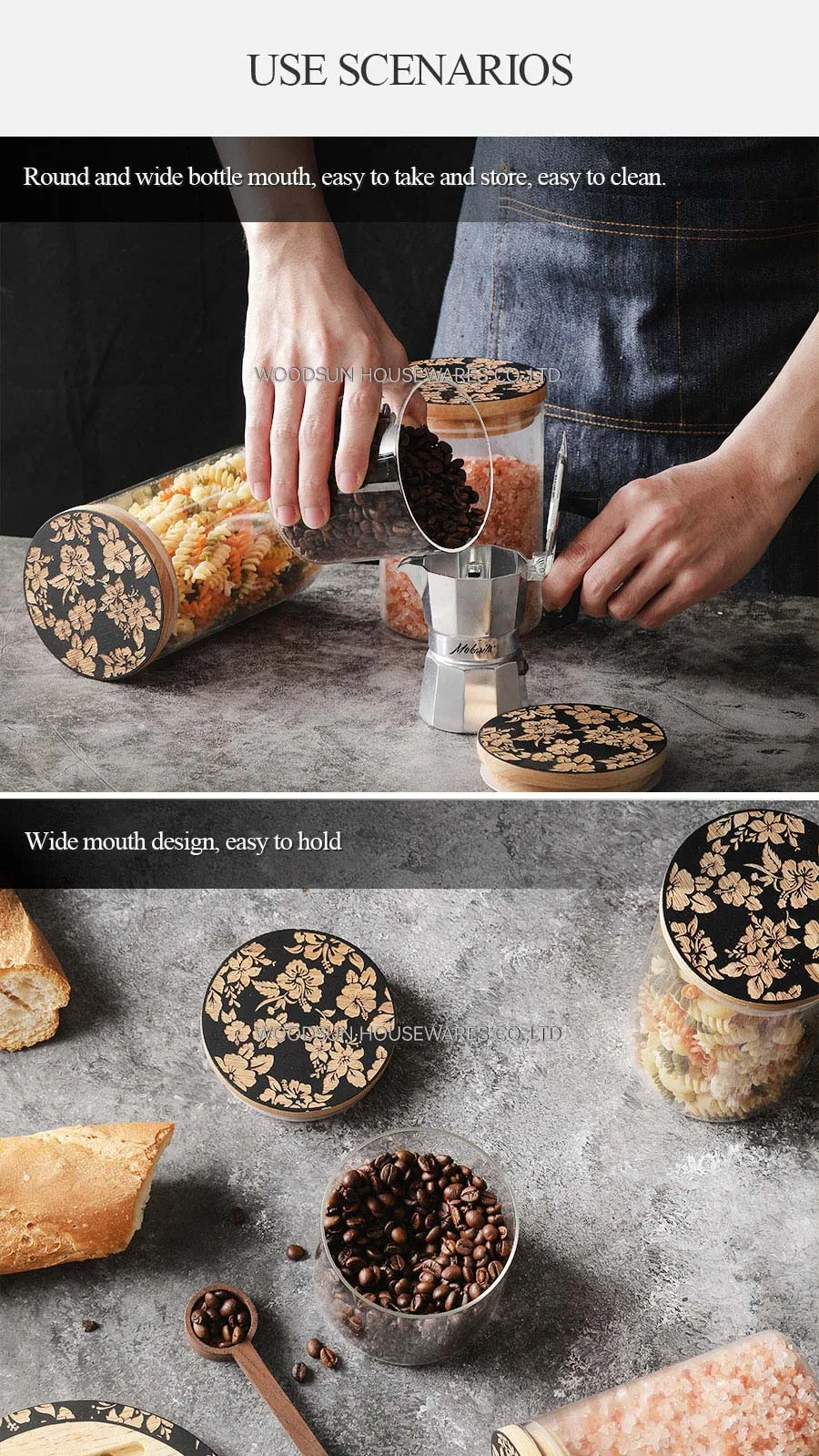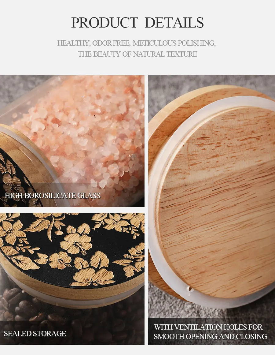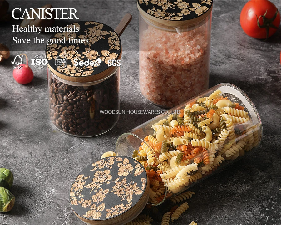 Woodsun Sealed Jar Food Glass Canister with Wooden Lid