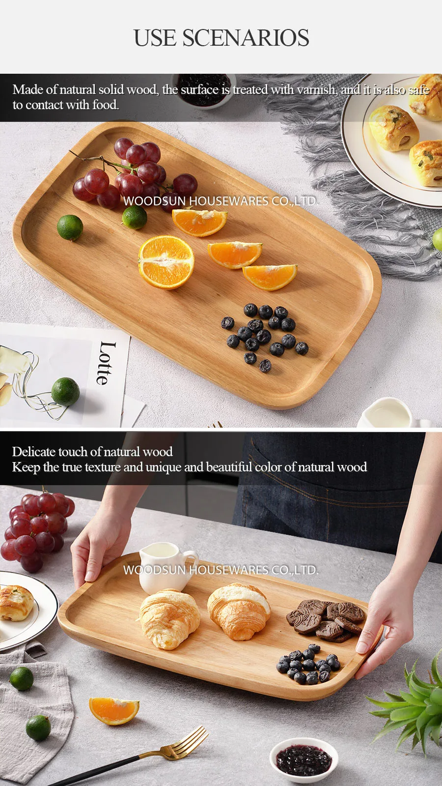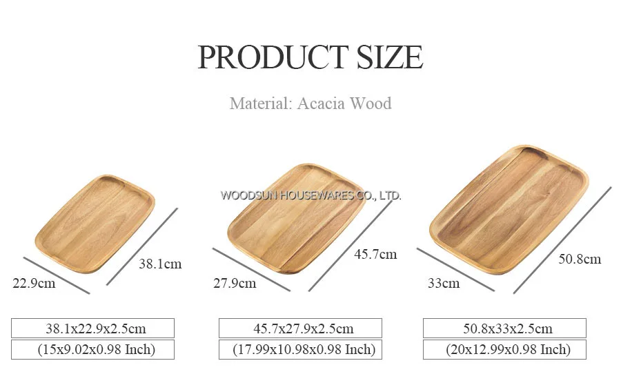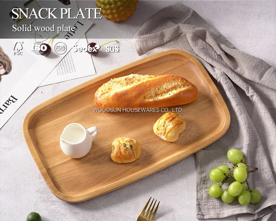 Woodsun Serving Wooden Plates Salver Food Acacia Wood Serving Tray