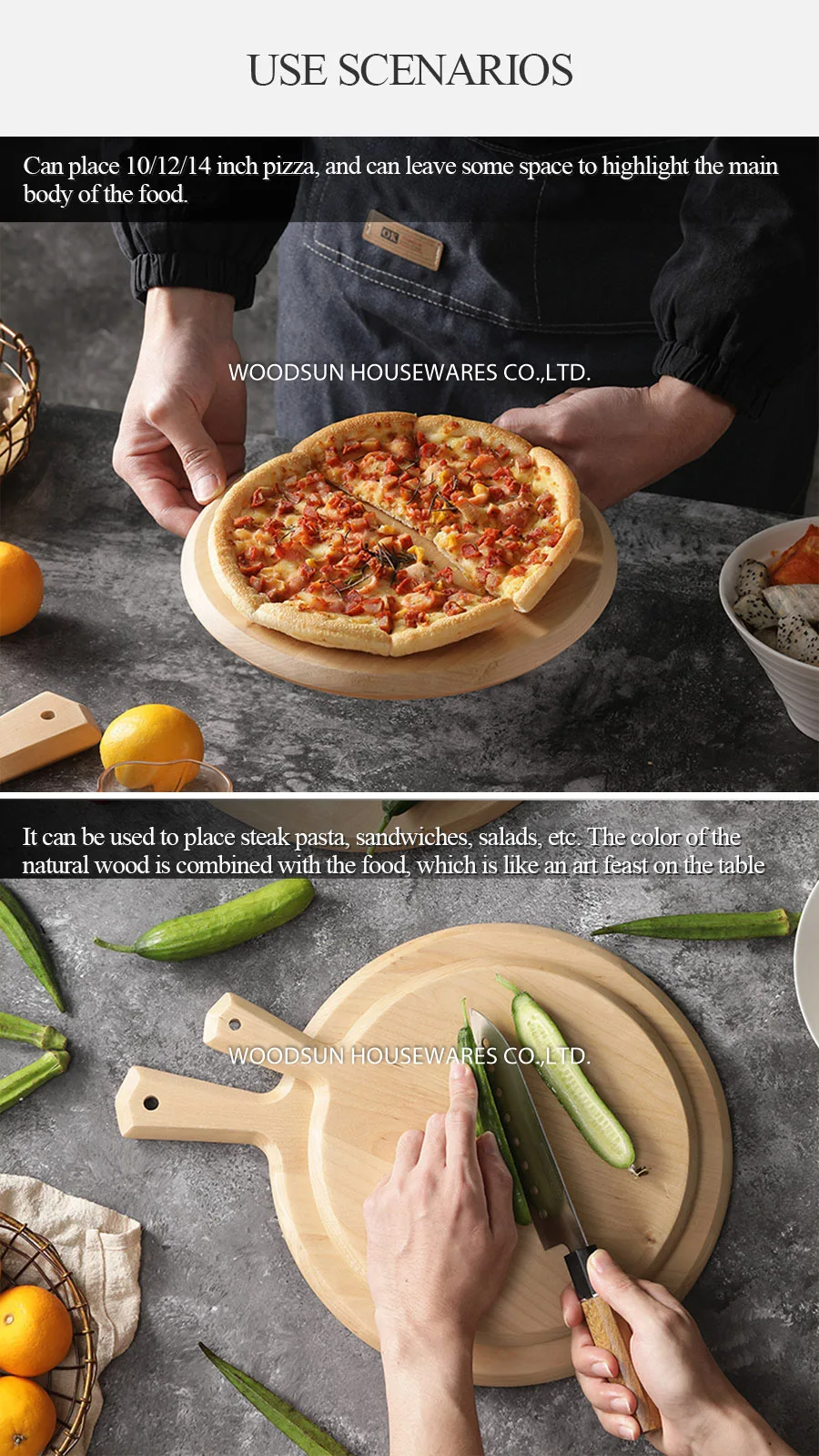 Woodsun Slicing Birch Custom Wood Cutting Board Kitchen Chopping Block Pizza Serving Board