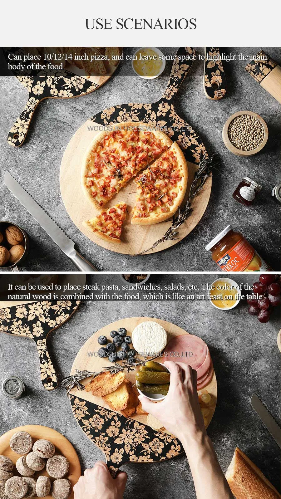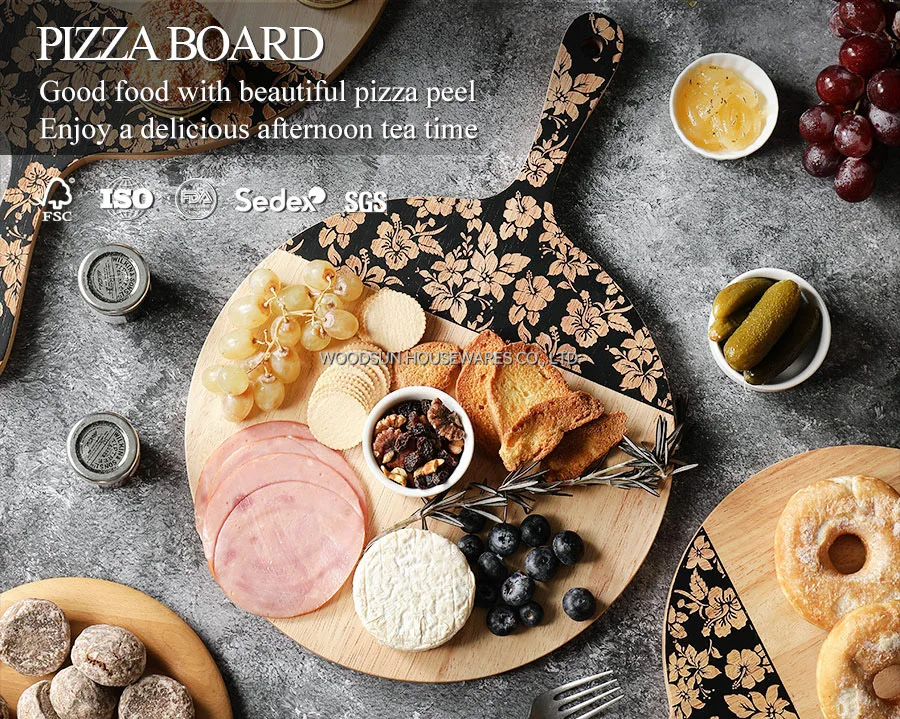 Woodsun Slicing Pizza Texas Cutting Board Round With Flowers Ningbo
