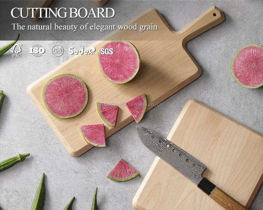 Woodsun Varnish Finish Birch Wood Wooden Charcuterie Board Set Cutting Board for Kitchen