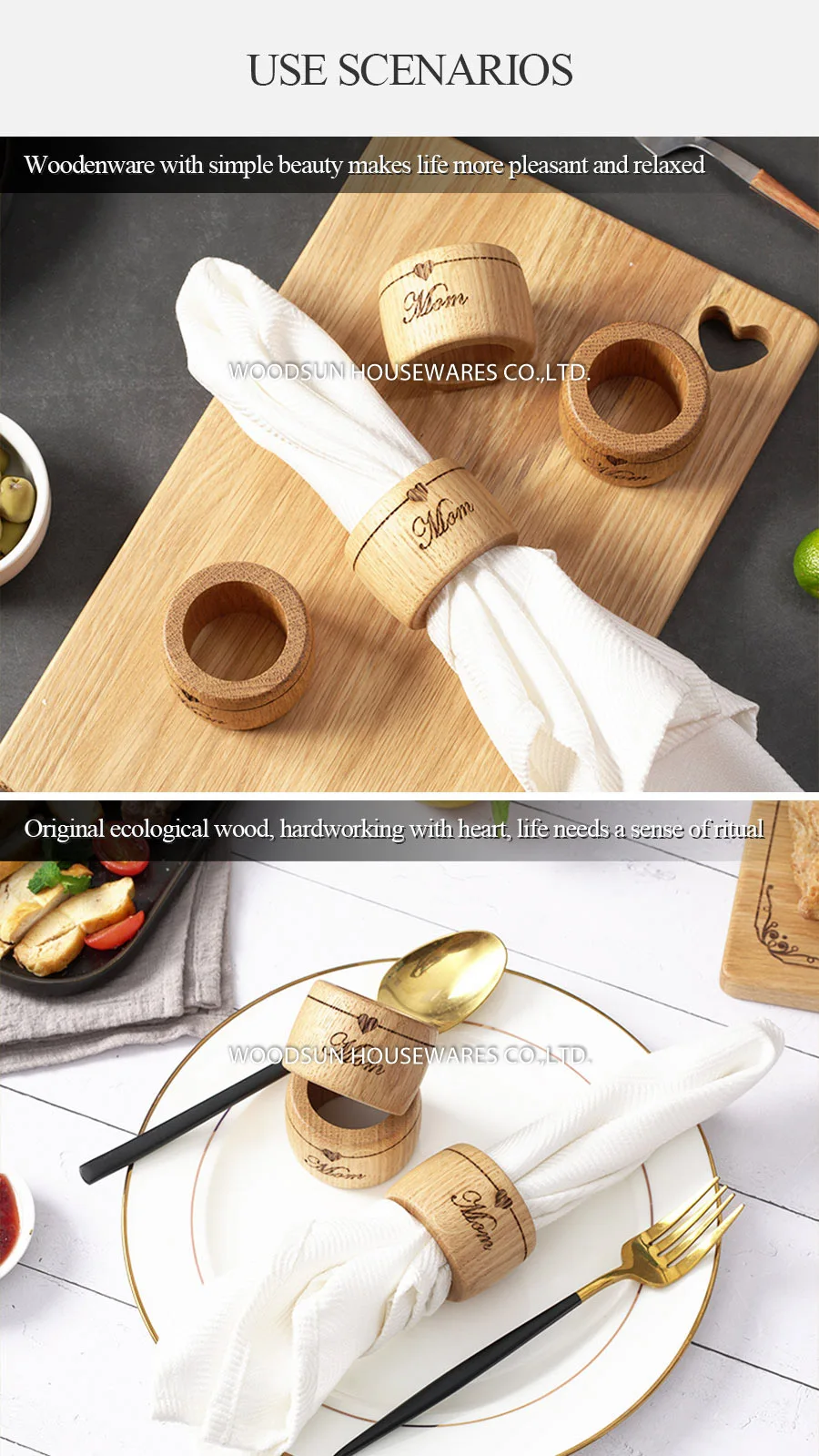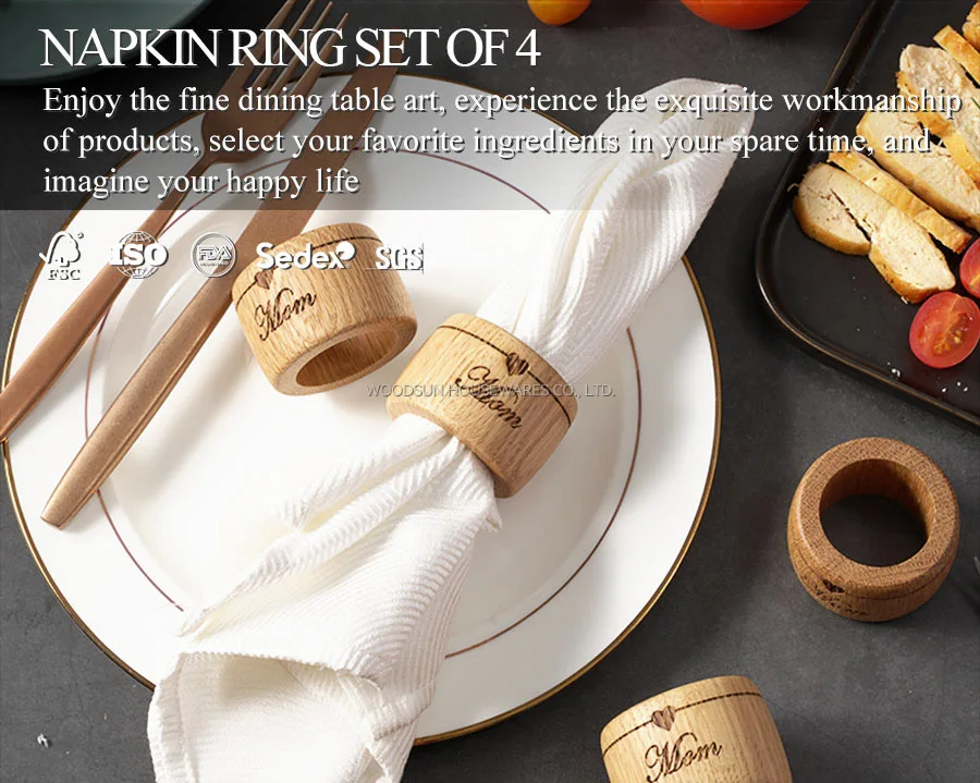 Woodsun Wooden Napkin Ring Holder for Tableware