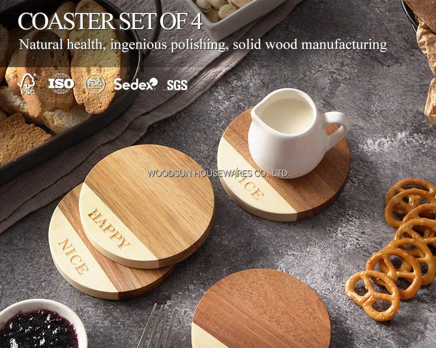 Woodsun World's Top 500 Cooperative Suppliers Acacia Wood Round Coasters Tea Cup Coaster